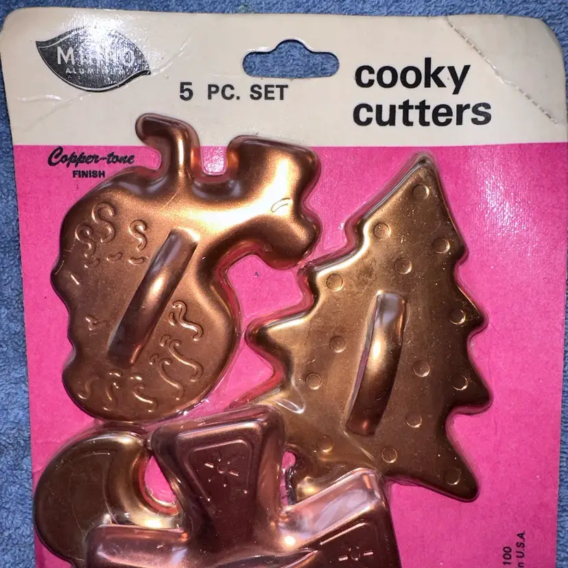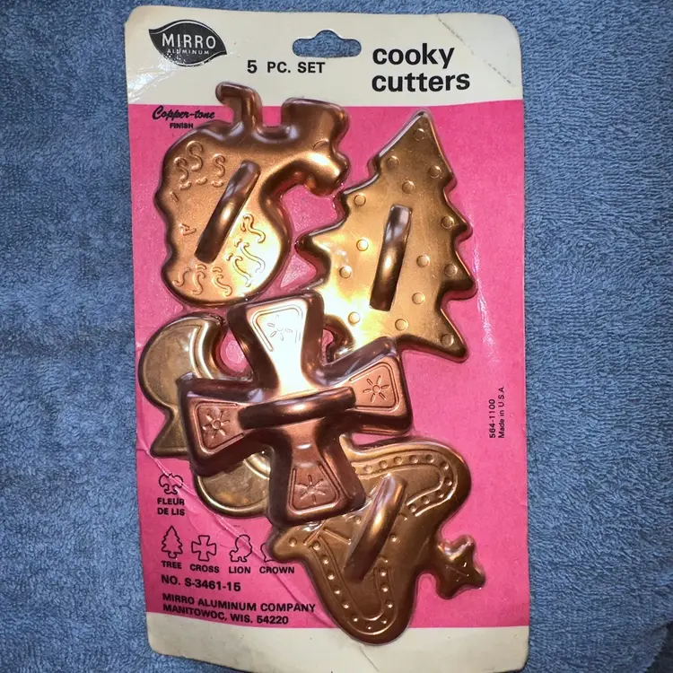 New Old Stock Sealed Vintage Mirro 5 pc. Cooky Cutter Set S-3461-15 Copper-Tone Finish USA. Smoke Free Home. #mirro #Mirroaluminumcompany #cookycutters #cookiecutters