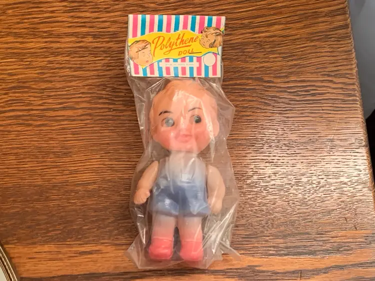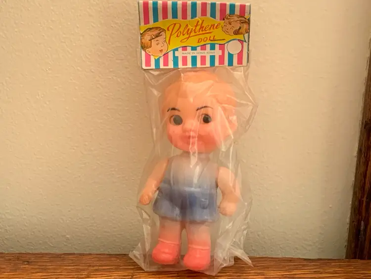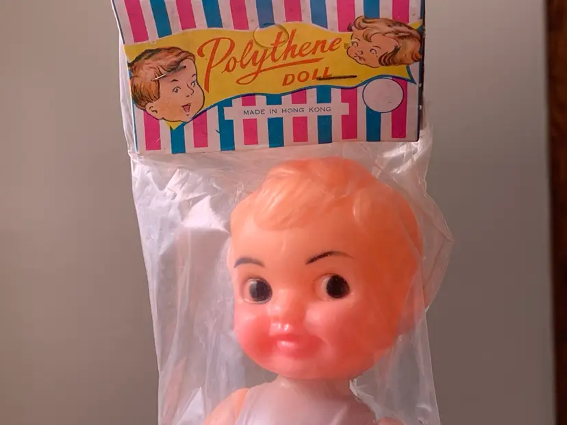NOS vintage plastic Polythene boy baby doll, mid century and great for your kitschy displays