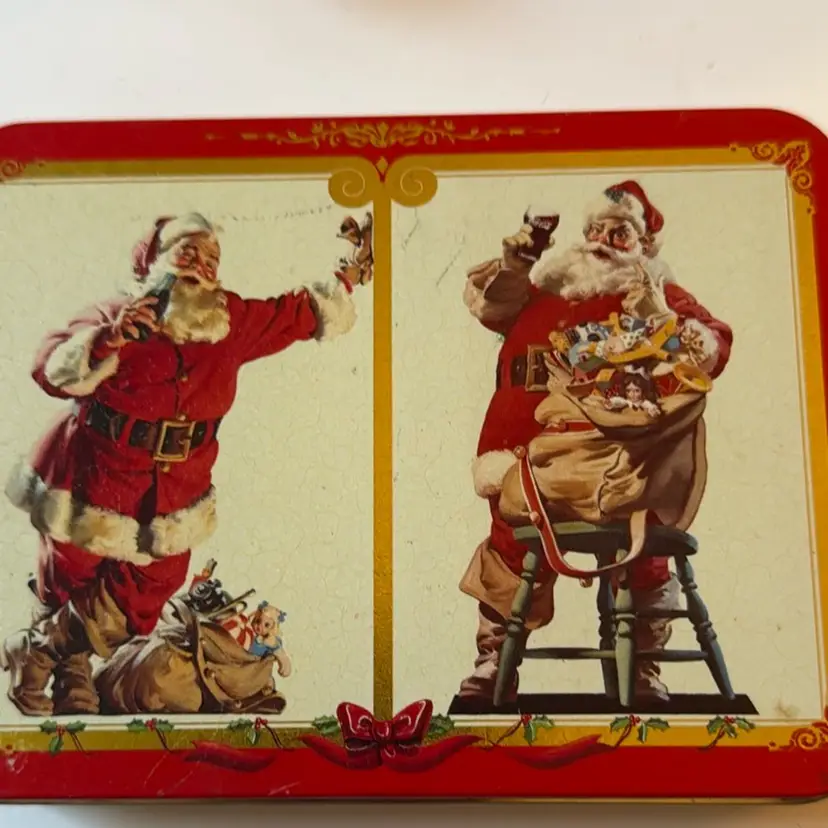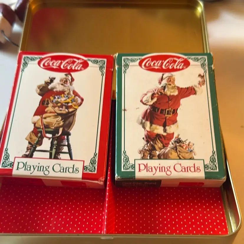 Set includes 2 decks of cards with Santa on them and drinking a cola beverage.