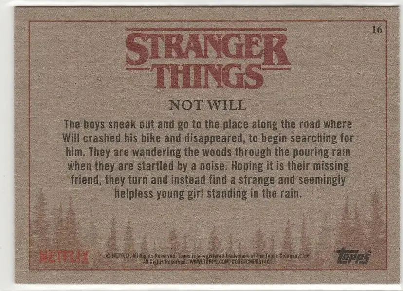 Not Will #16 2018 Topps Netflix Stranger Things Season One streaming series trading card