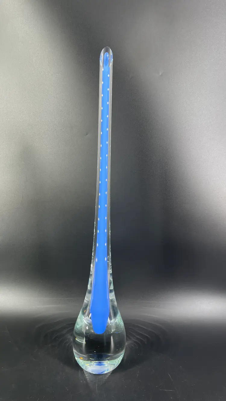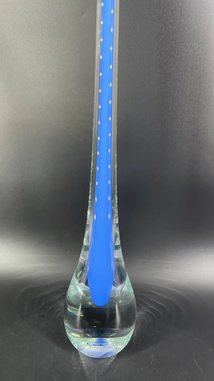 It is 23" tall and measures 4" in diameter at its widest. It is in great condition. There are no cracks, breaks, chips or repairs. There is a small surface mark towards the bottom on one side and a rub mark towards the bottom on one side. (See photos).