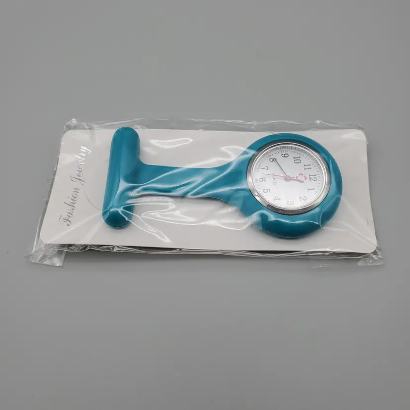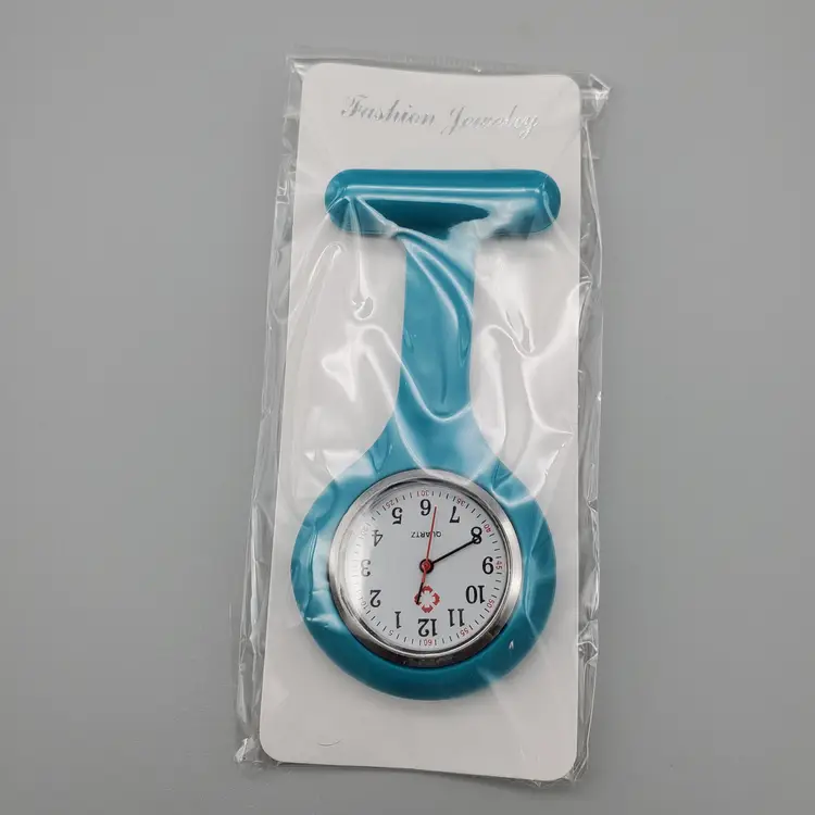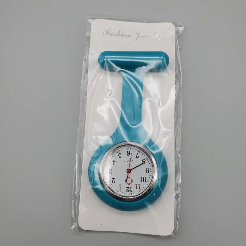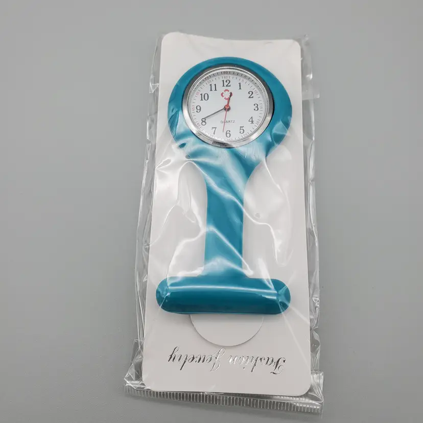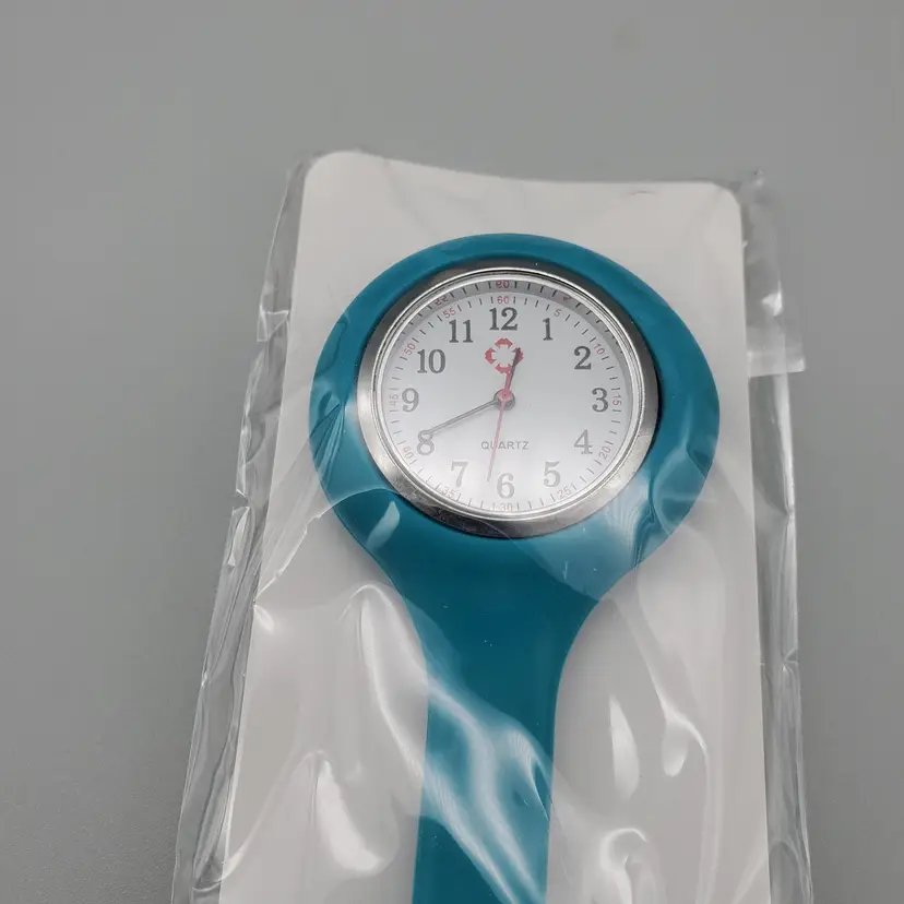 -Brand: Bluelans -Item: Nurse Pin/Brooch Lapel Watch -Measurements: Appx 3 1/2" Long-Clock face 1" Not Including Silicone Area -Condition: New In Package -Accents/Features: Nice Quartz Fashion Watch In Silicone-Lapel Style Watch-Great for Nurses, Nurses Aides, Anyone in the Medical Field! Nice for anyone who doesn't wear a watch or cannot wear one-Great Gift Idea or Stocking Stuffer!! To Activate Pull the Tab on the Side of the watch for batteries to begin working-Hangs Upside down so you can lift it up to see time and it is attached by a bar pin-Comfortable Stretchy Silicone -Material: Metal, Silicone -Color: Teal
