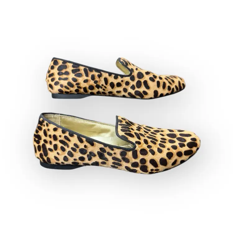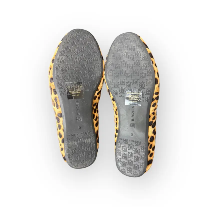 Birdies are known for their stylish outside looks and their slipper-comfortable inside feel. These loafers are hard to find in perfect unused condition, especially in a size 5. Starling calf hair in the cheetah print, this style is no longer available on the Birdies website. Only found in leopard print. Original box and packaging not included.