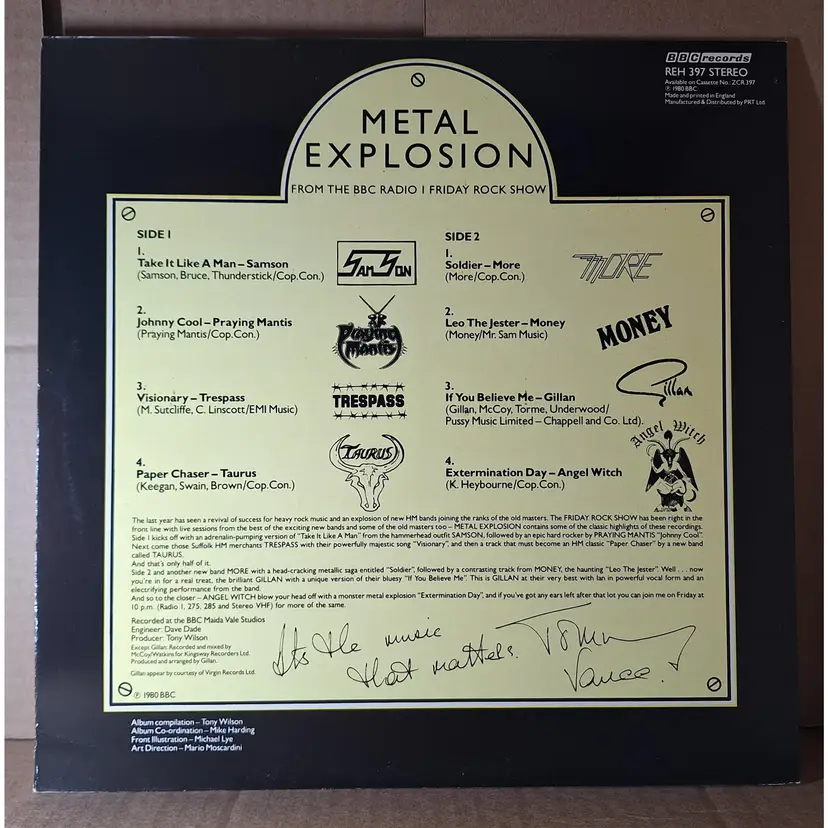 BBC Records record album from 1980 in very good shape from my personal collection. This is a Import album from England. Includes: Samson Praying Mantis Trespass Taurus More Money Gillan Angel Witch