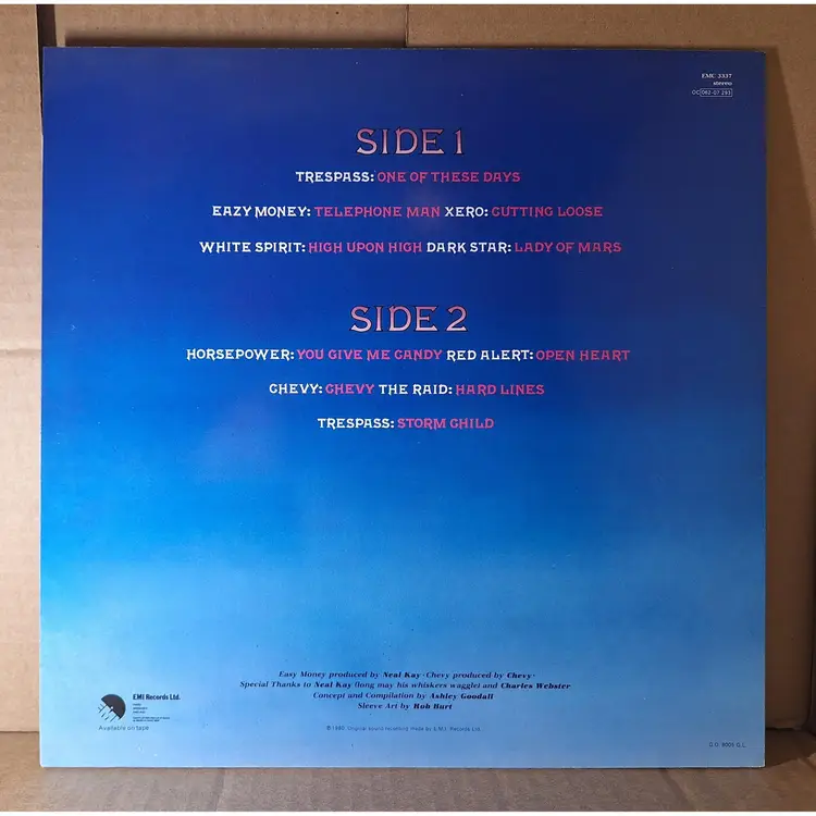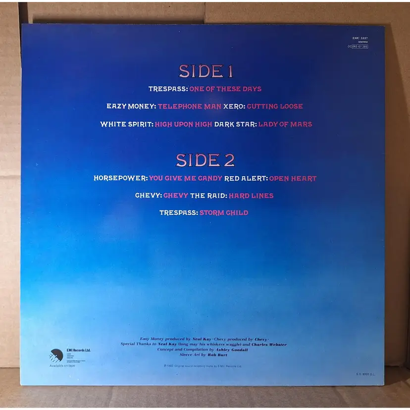 EMI Records record album from 1980 in very good shape from my personal collection. This is a Import album from England. Includes: Trespass Eazy Money Xero White Spirit Dark Star Horsepower Red Alert Chevy The Raid