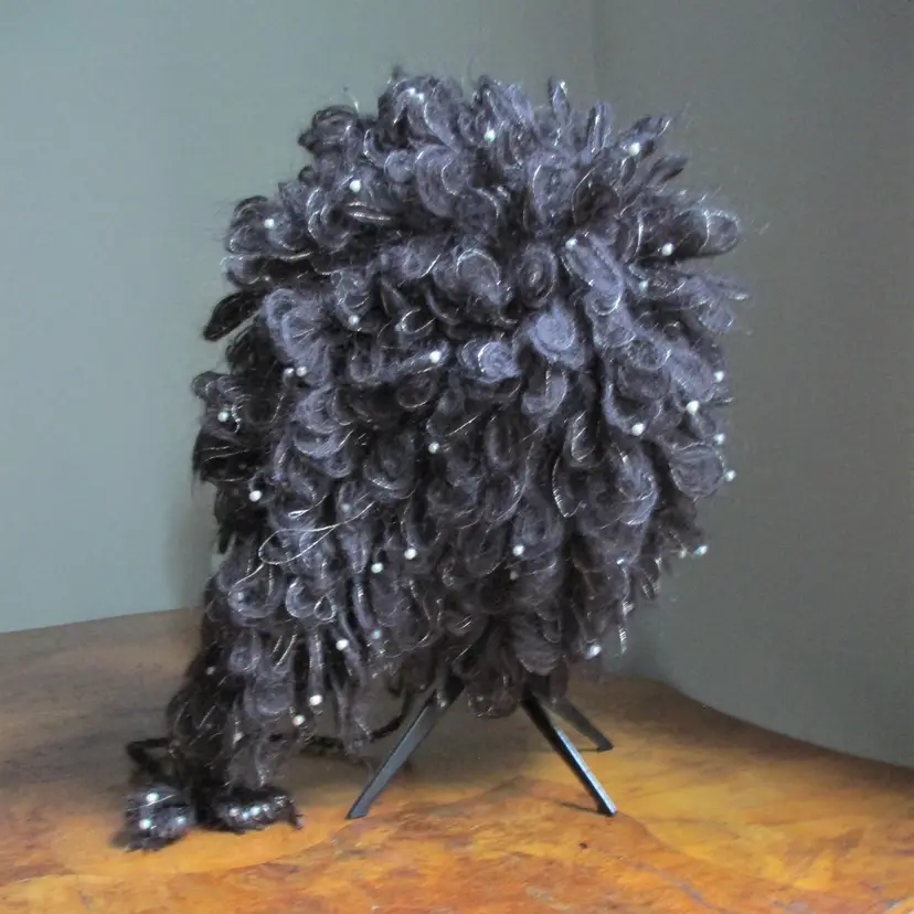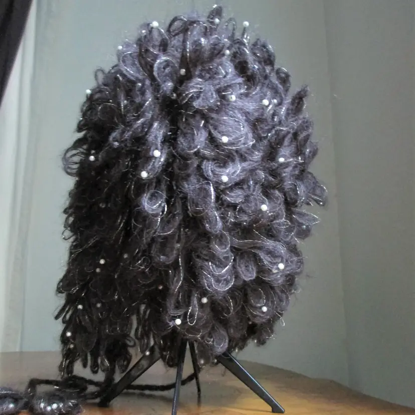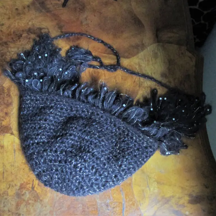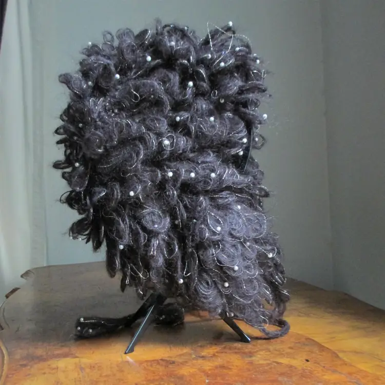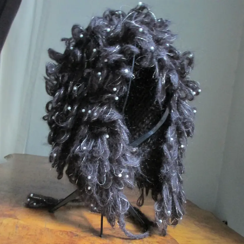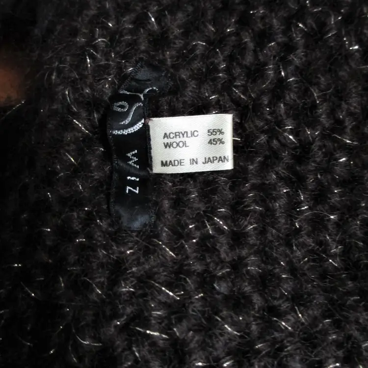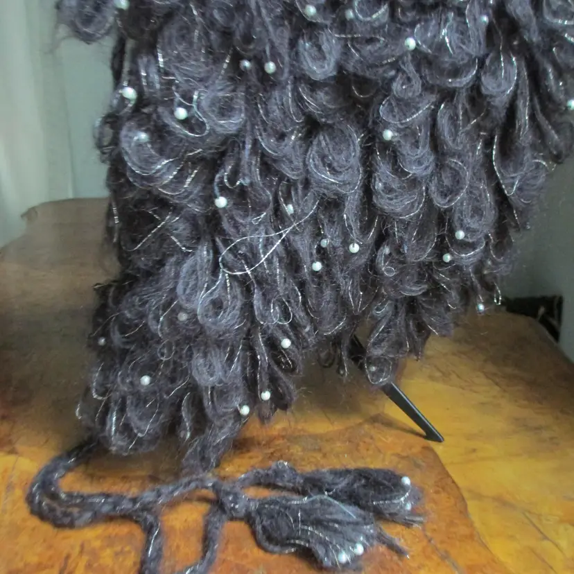 From a Soho, NYC boutique Dark brown/brunette with a silvery thread & tiny white pearly beads 55% acrylic/45% wool ZIM/Made in Japan Unused/never worn condition Vintage or nearly vintage
