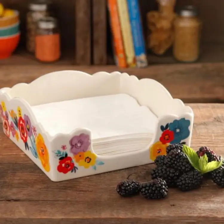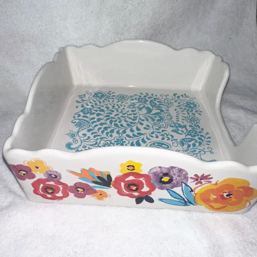 New Unused The Pioneer Woman Flea Market Ceramic Napkin Box 7.5” Square Floral Design. No Chips, Cracks, Crazing Or Repairs. Smoke Free Home. #pioneerwoman #fleamarket #napkinholder #napkinbox #tablesetting #kitchenessentials