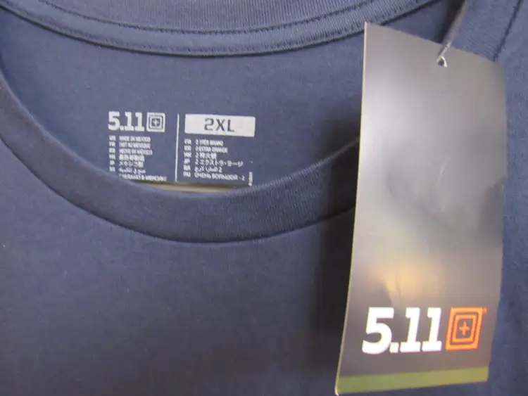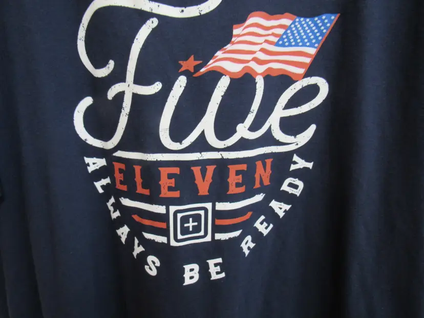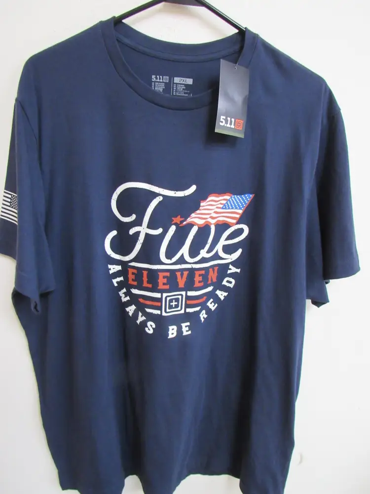 New with tags 5.11 Tactical blue patriotic t-shirt. "Always be ready". Size 2XL. 24" armpit to armpit and 31" top of collar to bottom of hem. 4281