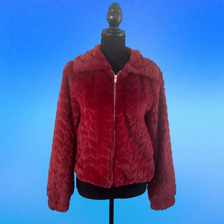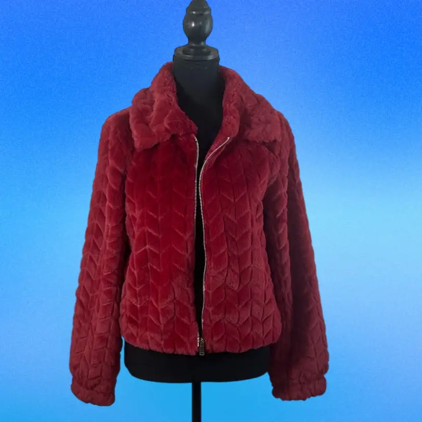 Burgundy Fleece Jacket Size Small Polyester Dry Clean only $183MSRP