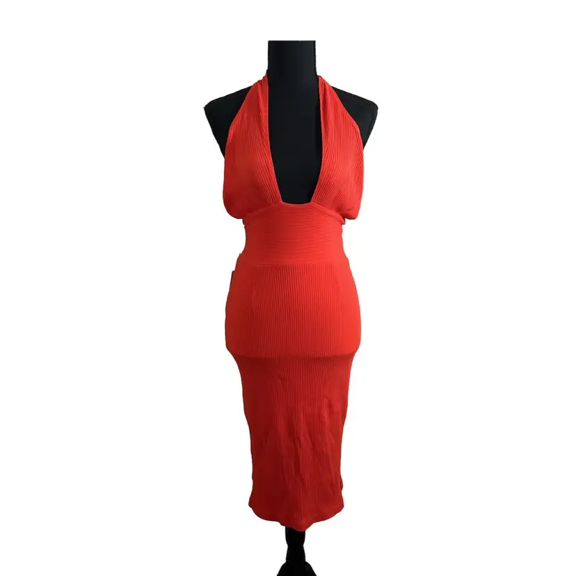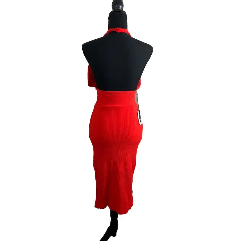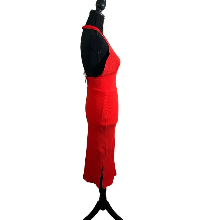 Size Xsmall Halter top dress, please note the twisted material in the back of the neck Open back, slits on both sides Cotton and Elastane blend Hand wash cold water, Dry clean for best results Made in China RN#142824 MSRP$128