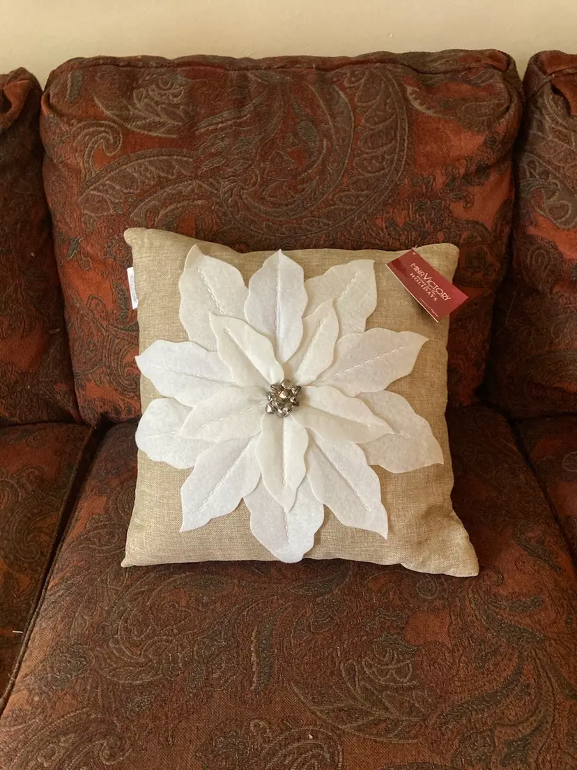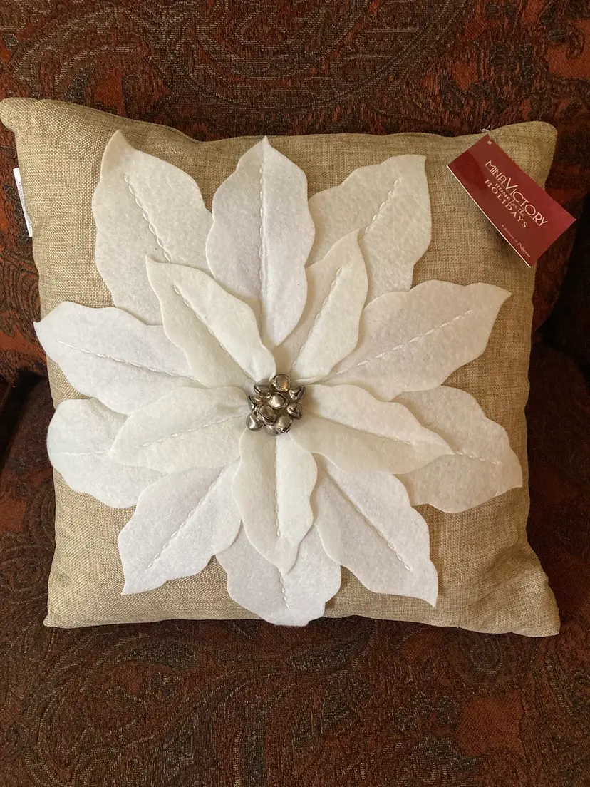 NWT New with tag - Zippered so can be washed - Burlap w Wht Felt Poinsettia -