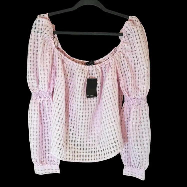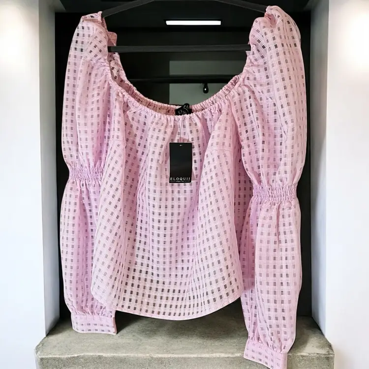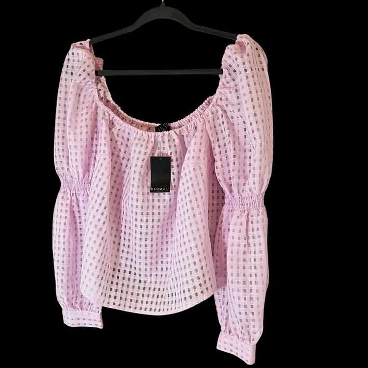 The NWT ELOQUII Square Neck Puff Sleeve Cutout Top Blouse in Pink, size 16, embodies the Barbiecore aesthetic with its solid pink color, puff sleeves, and cutout accents. This blouse is perfect for various occasions including travel, parties, casual outings, and business meetings. Made from lightweight and breathable polyester material, it features a regular fit and a pullover closure. The pink color and Barbie-inspired design make it a fun and fashionable choice for summer, fall, and spring seasons.