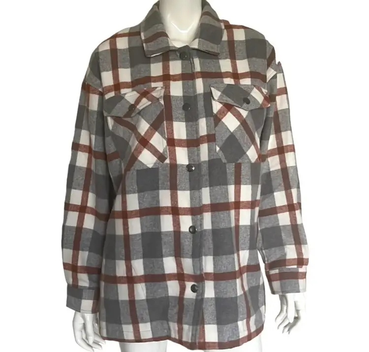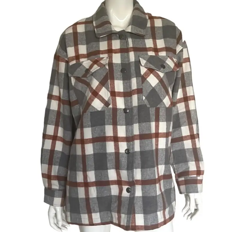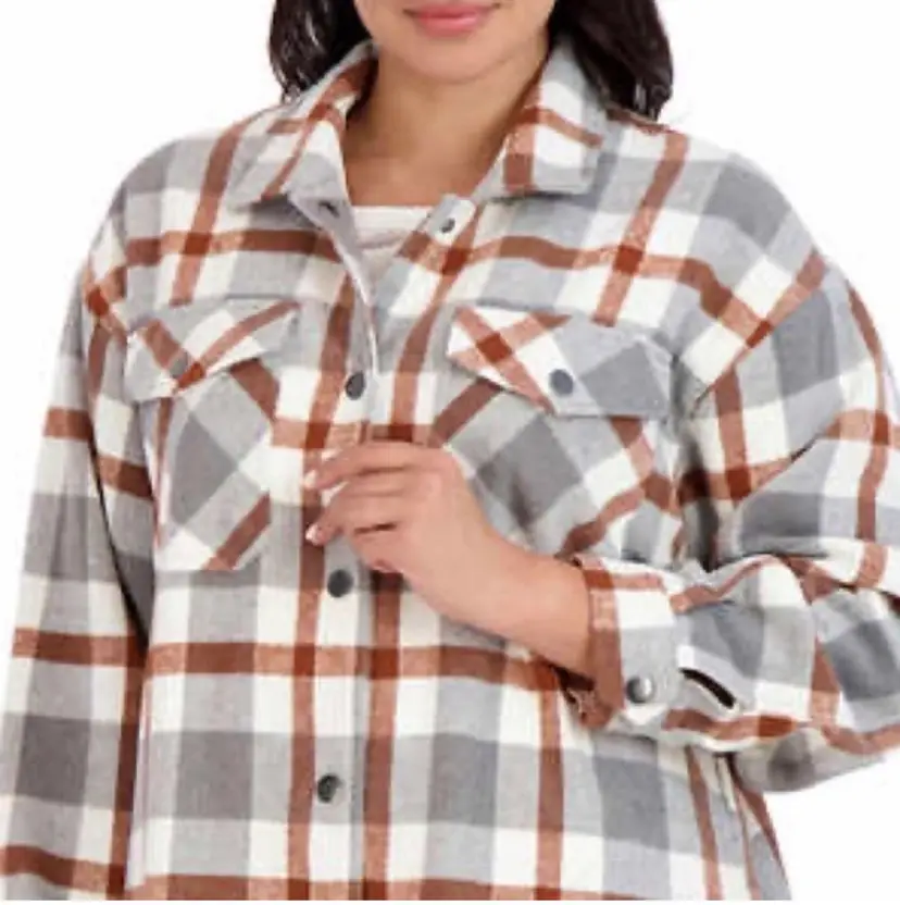 (NWT) HFX Women’s Plaid Shirt Jacket in Gray/Brown, Size: Medium