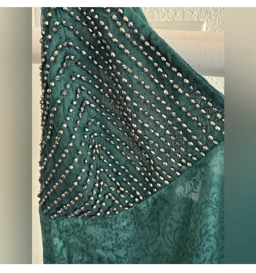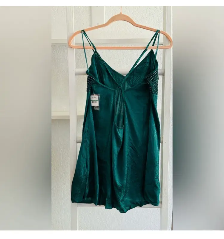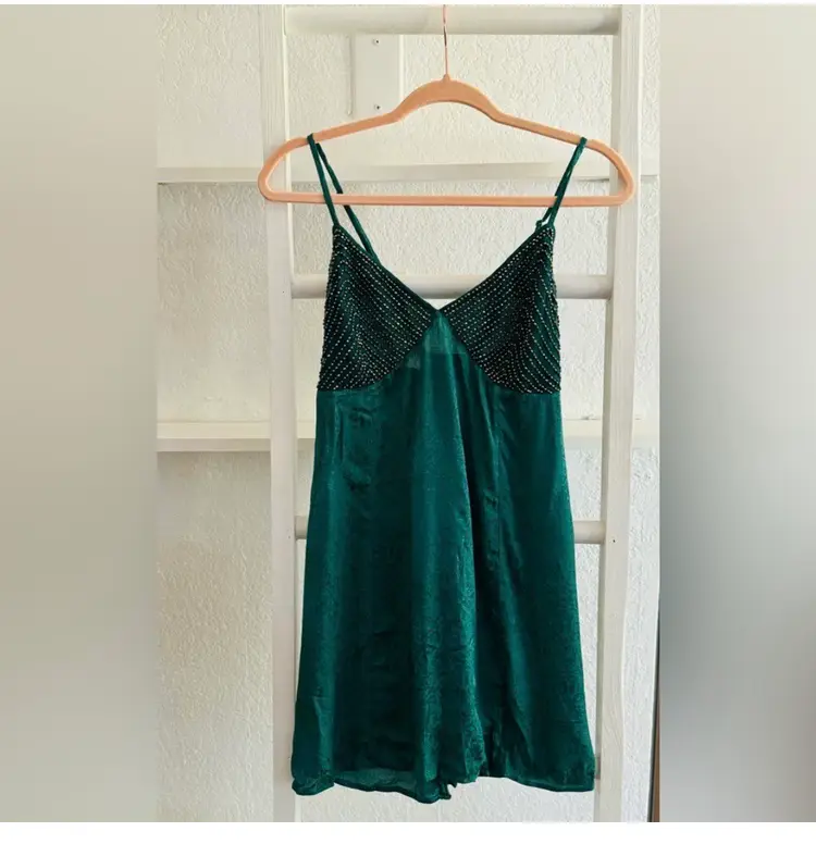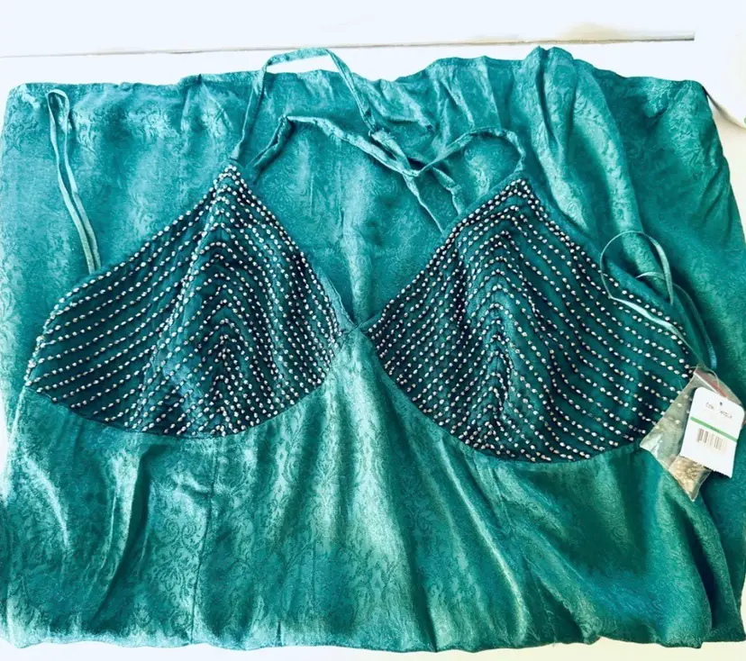Forest green with beaded top detail. adjustable spaghetti straps Approximate measurements Length 27" Chest 19"