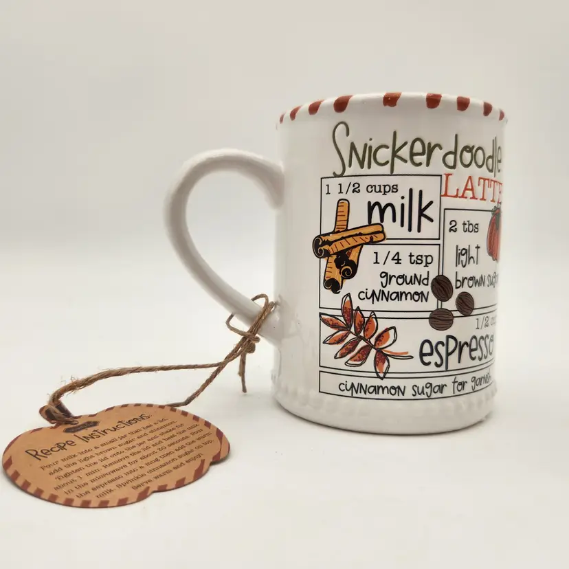 Keywords: Mudpies, Recipe Mugs, Coffee Mug Set, Snickerdoodle Latte Mug, Caramel Apple Cider Mug, Fall Decor, Kitchen Decor, Drinkware, Coffee Lover Gift, New Mug Set, Decorative Mugs, Seasonal Mugs, Latte Mug, Cider Mug, Autumn Mugs