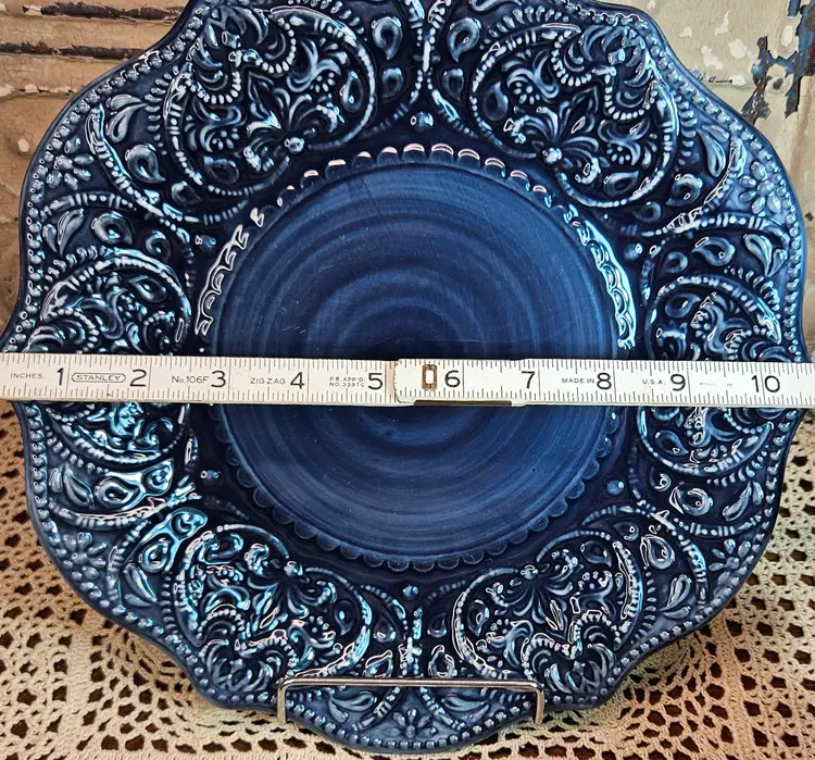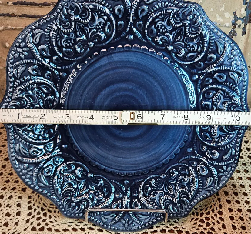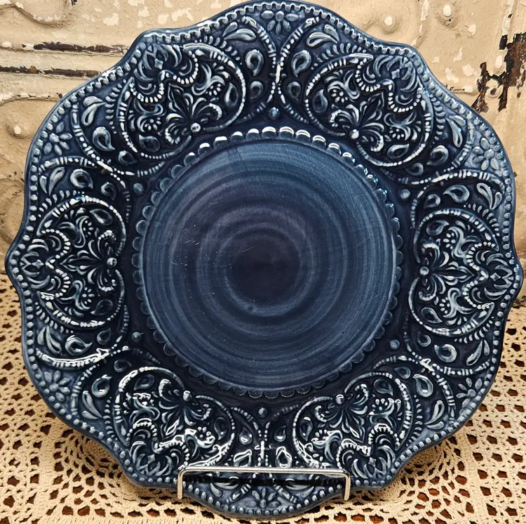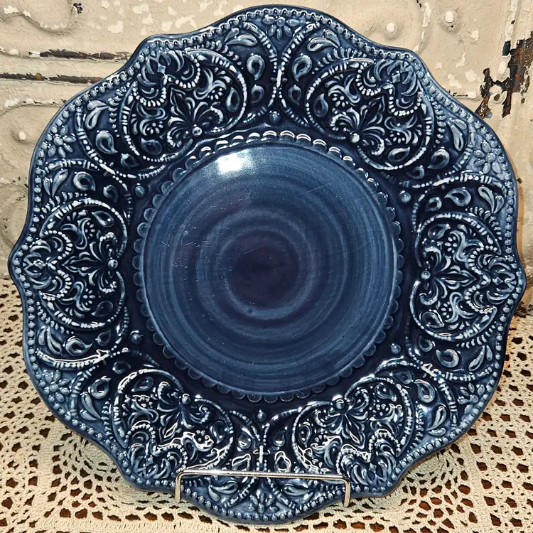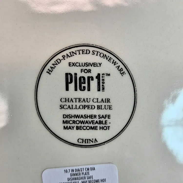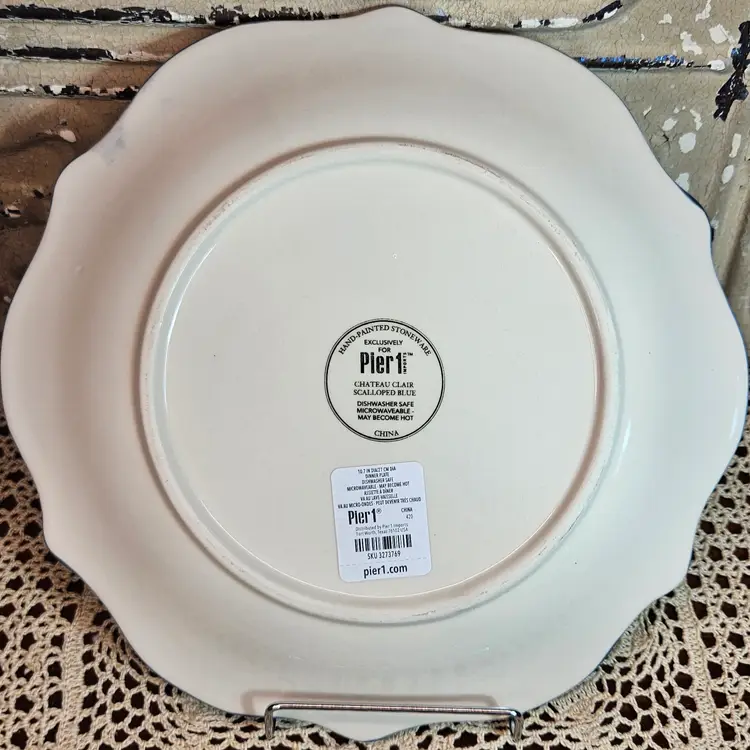 NWT Pier 1 Imports Chateau Clair Scalloped Blue Embossed Dinner Plate 10.5" Pristine condition!
