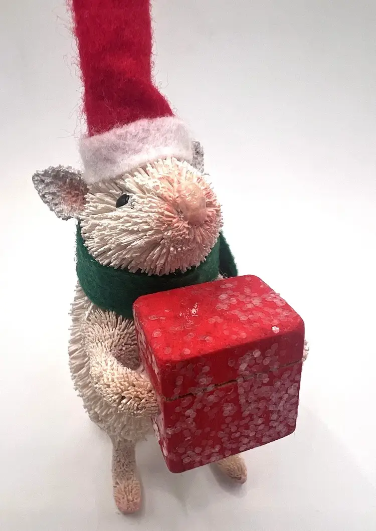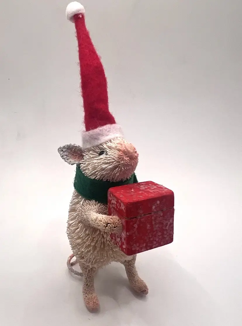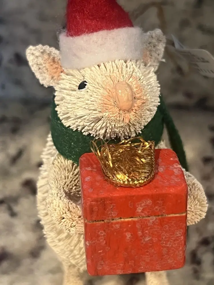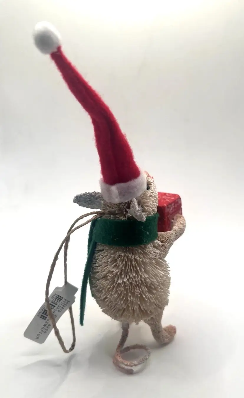 Description: Pottery Barn Bottle Brush Mouse w/ Red Box & Hat Christmas Ornament New With Tags ADORABLE