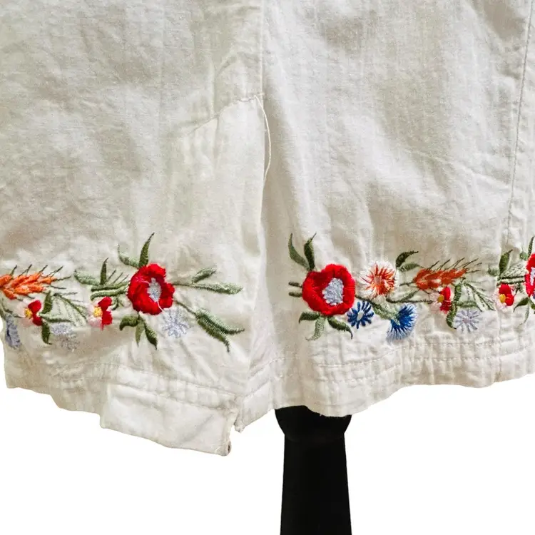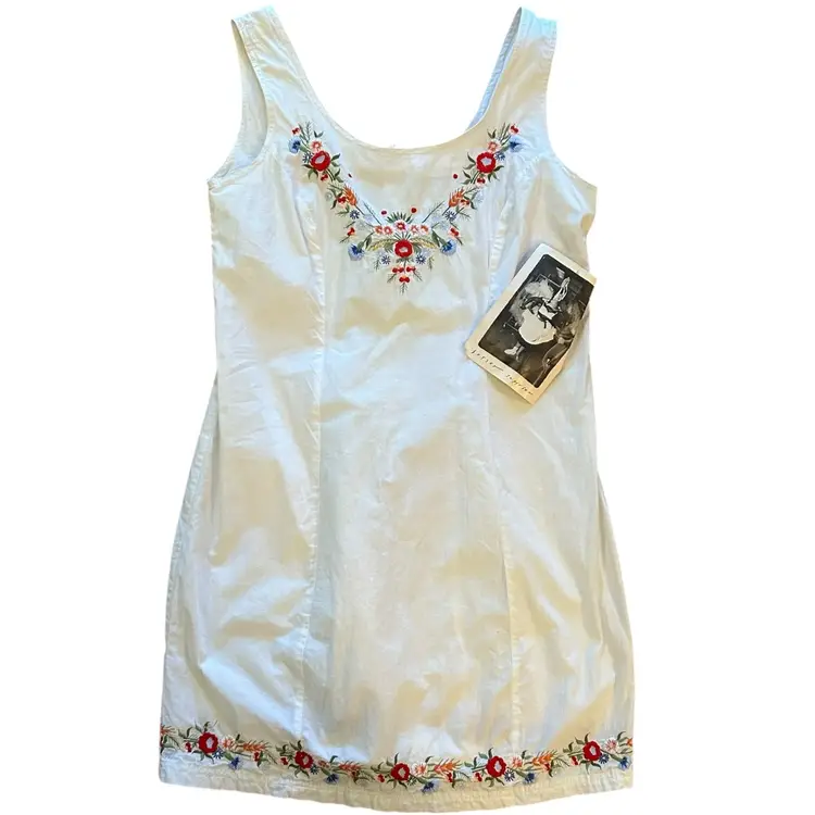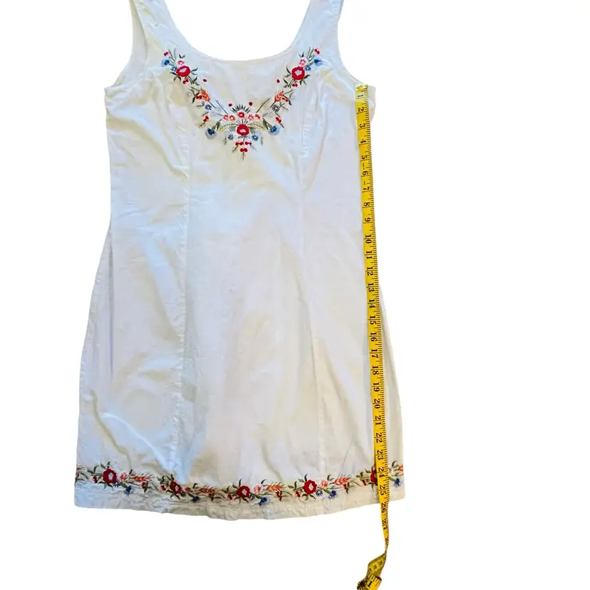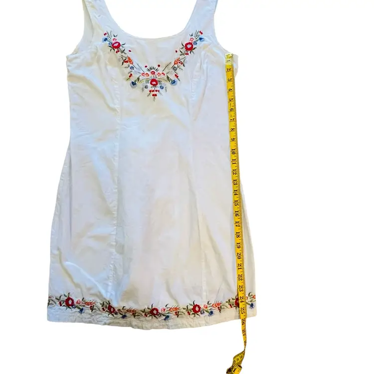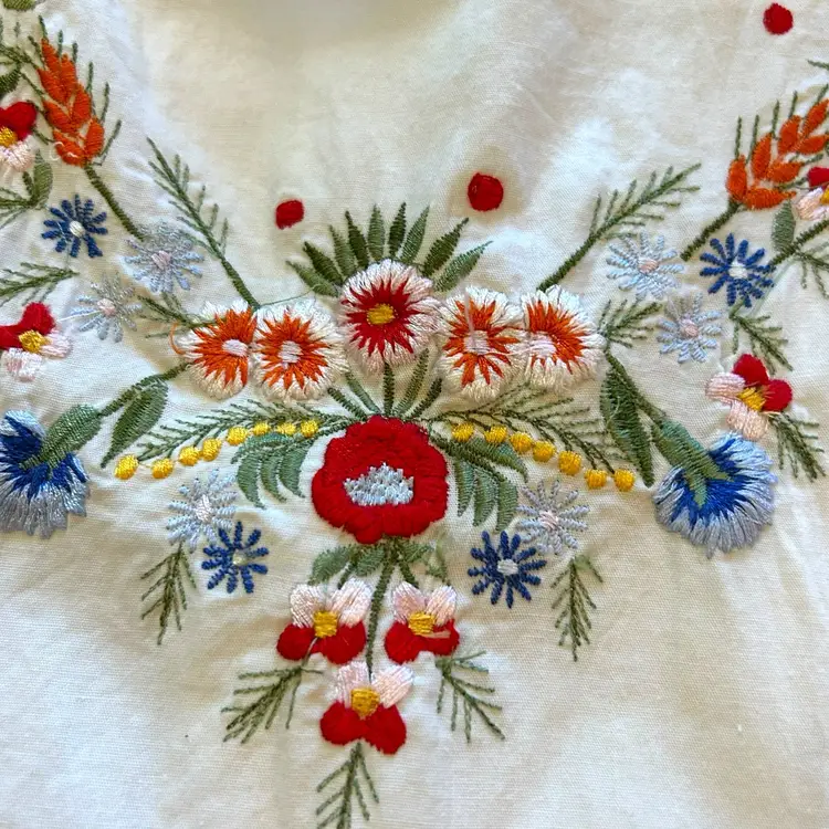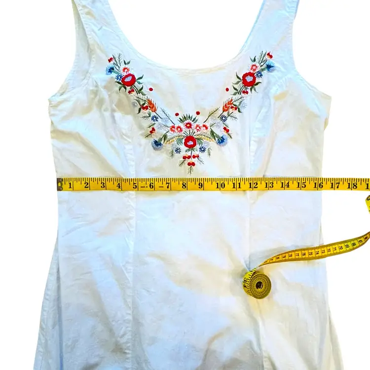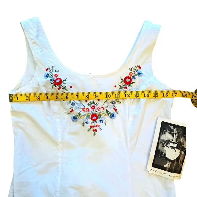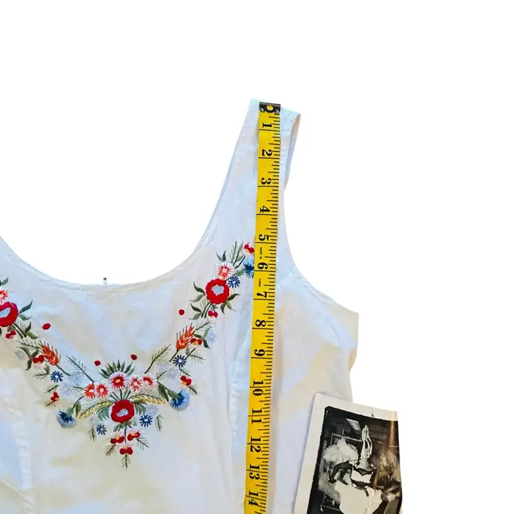 Such a fun vintage dress! - Has small light colored yellowish mark on front that is not noticeable - please see photos. This is a vintage size Large and appears to be on the small side. Please see dress measurements. Because it is cotton, there is not much stretch.