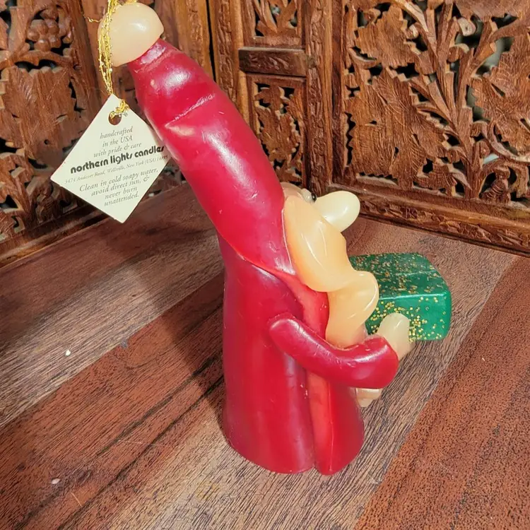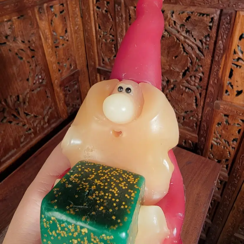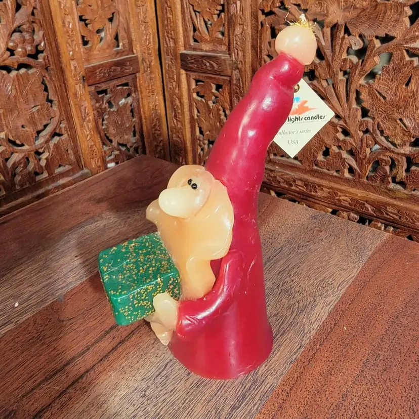 NWT vintage Santa gnome candle holding a present. Bring a little whimsy magic to your holiday season with this vintage candle. Northern Lights candles. Fantasy candle, unused. In good vintage condition, no breaks. There is a little bit of surface scratching and a little bit of dust. Easily cleaned with soapy water. Please see photos for details and condition.