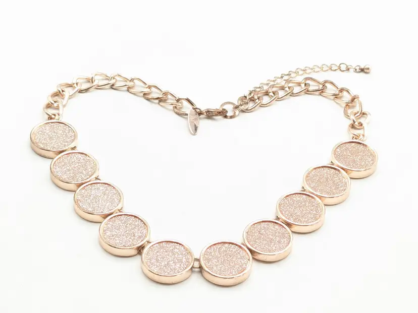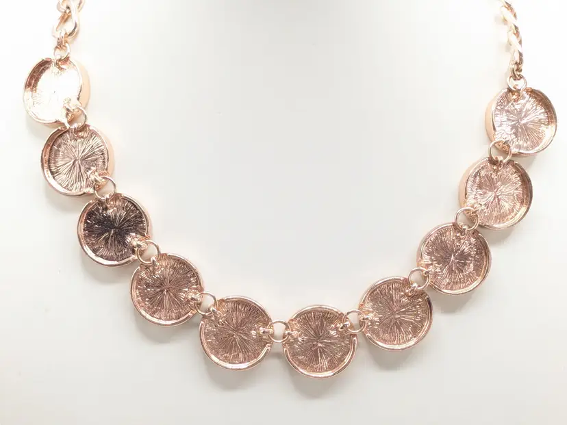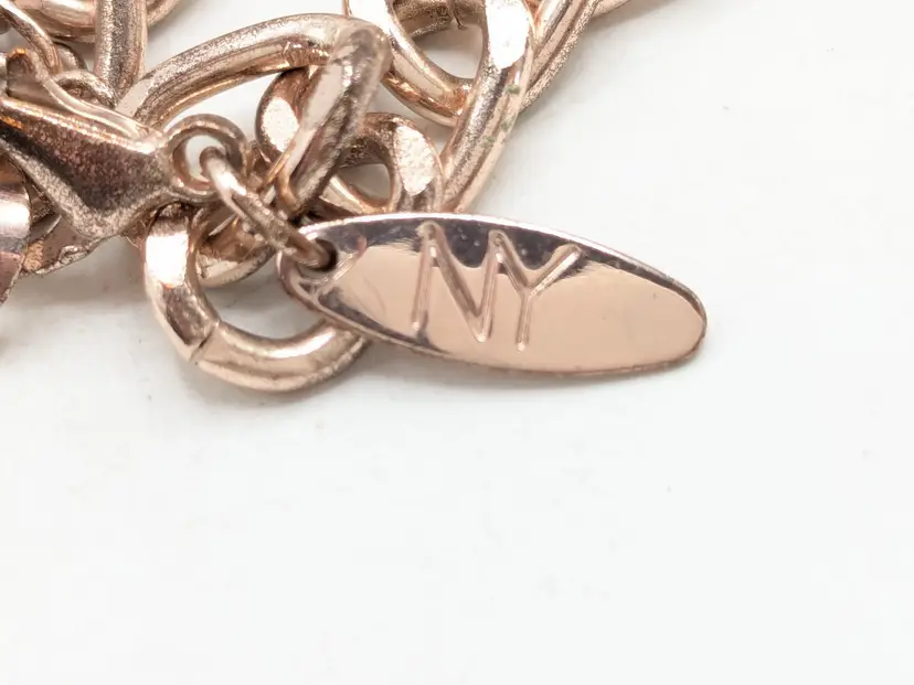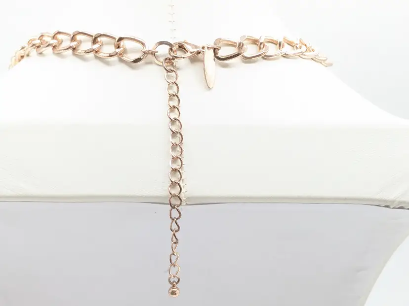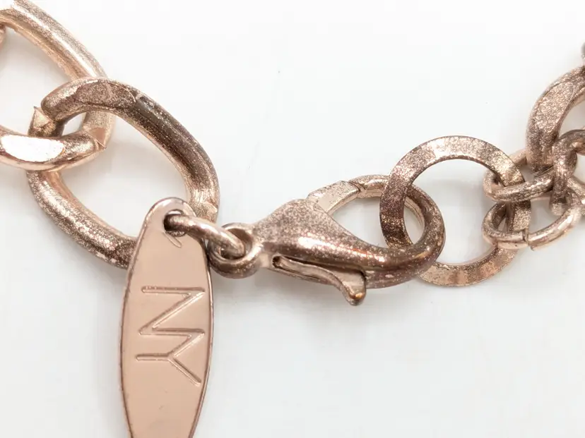 Good condition. Gold tone is bright and shiny with no color loss. Marked NY on hang tag. Measures 16 1/2" with a 3" extension. EN2