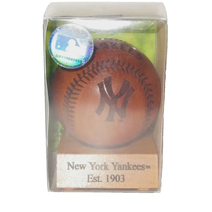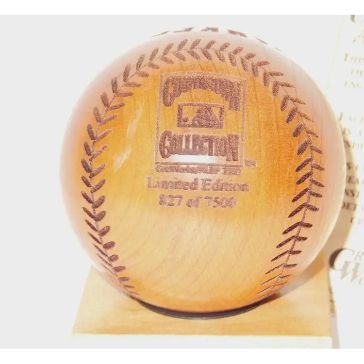 This is a vintage, NY Yankees Cooperstown Collection Wooden Baseball 2002 Limited Edition MLB. It's in the original box, with COA and Holographic MLB sticker. It was made in the USA. It is marked as 827/7500. It measures 2.5" in diameter, not on the wooden stand. Hard-To-Find!! Esp in the original box w/COA.