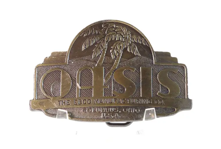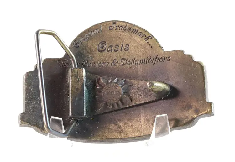 Very nice Belt Buckle Oasis Wine Coolers & Dehumidifiers 1980s Made In USA by Lewis Buckles.