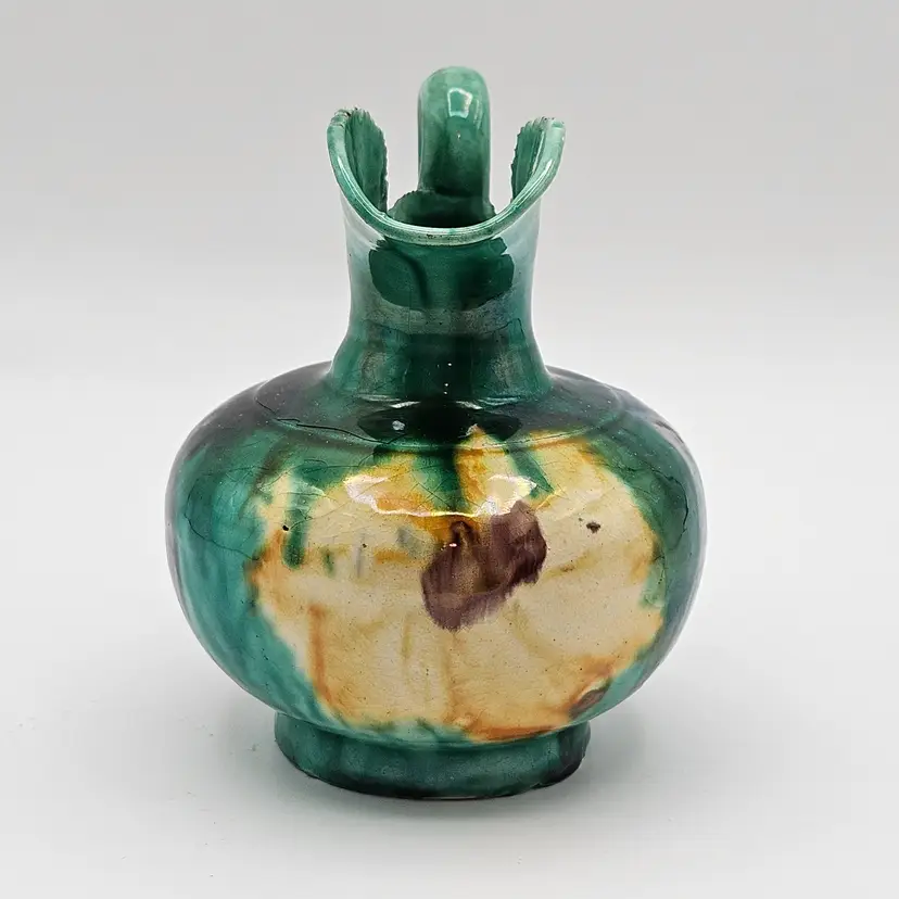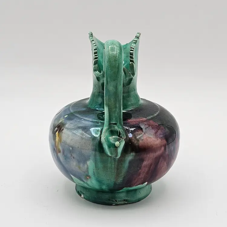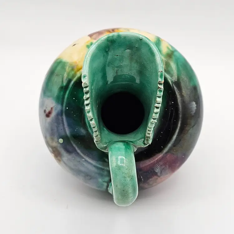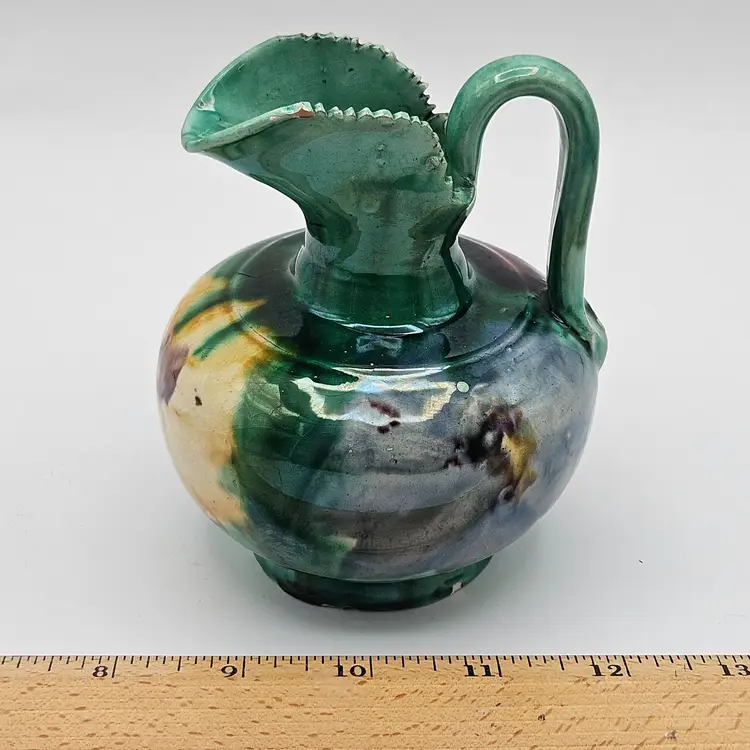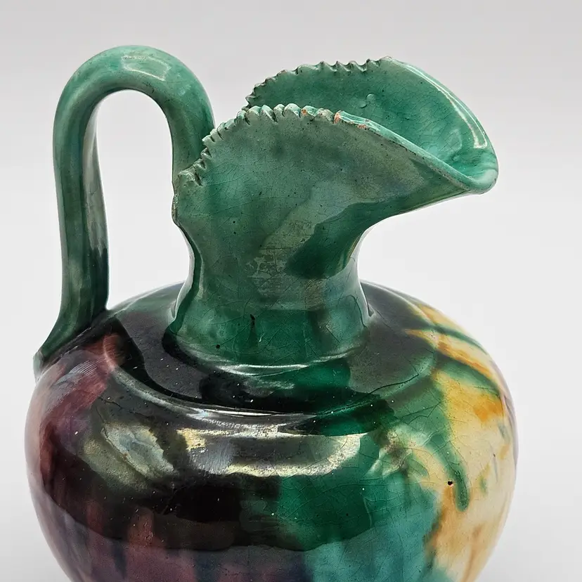 Oaxaca Mexico Dripware Ceramic Pottery Pitcher Vintage Flowers Green Blue Yellow Purple