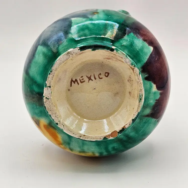 Dripware or splashware is made in the city of Oaxaca. Mexican Ceramics of the 20th Century. These vintage pieces typically used lead-based glazes and are quite fragile due to the low temperatures at which they are fired.