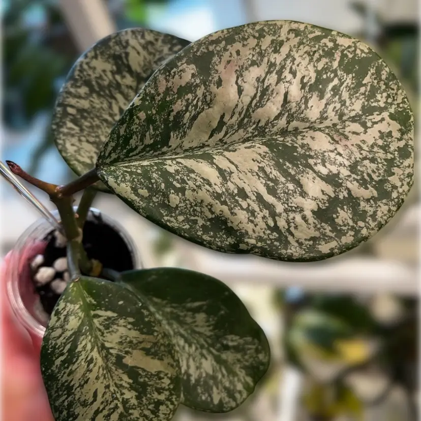 Four leaf beautiful high splash plant! This is the most under-rated hoya, in my opinion! It has grown consistently and sunstresses a light purple (see second photo!)