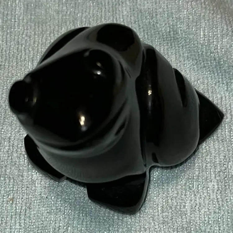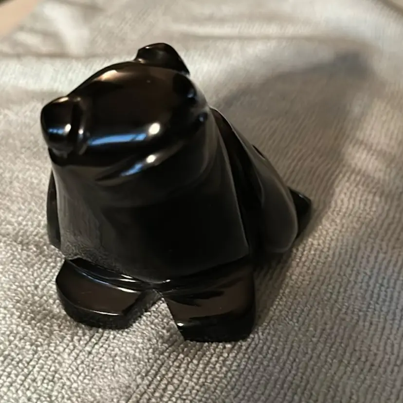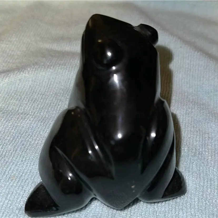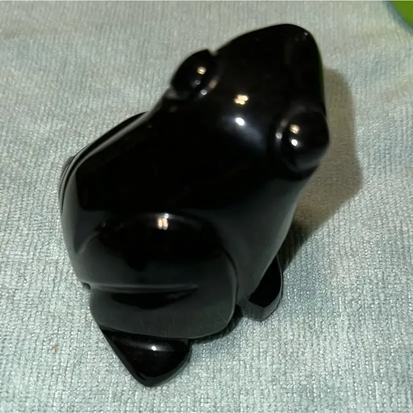 3”T x 3”W x 2.5”D Carved Obsidian Stone Frog Figurine Black Toad Art Carving Sculpture. Beautiful carved figurine. No imperfections.