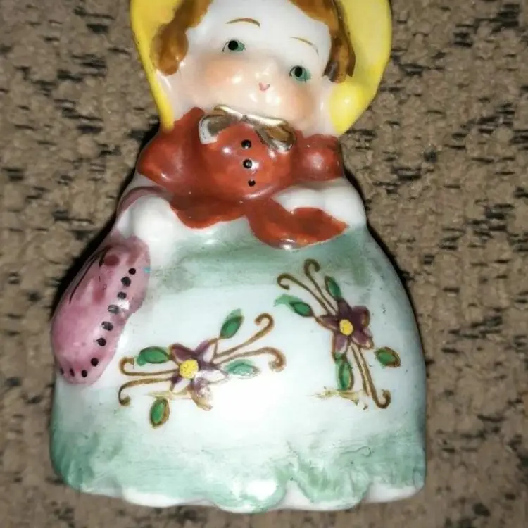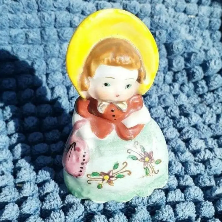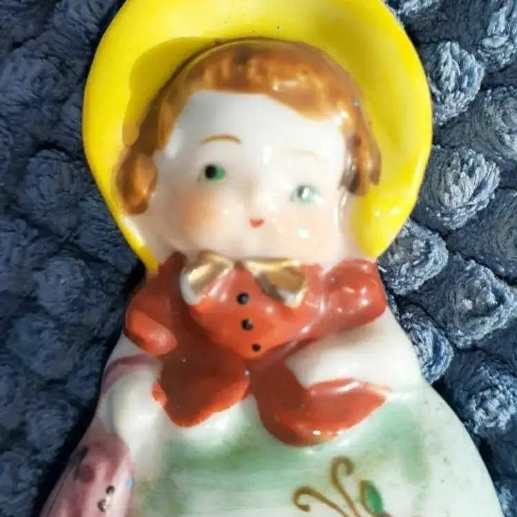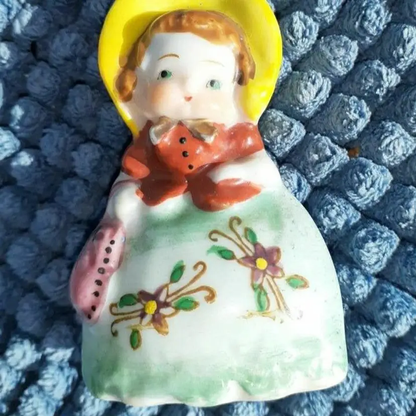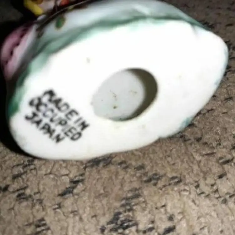 Vintage Occupied Japan figurine red headed girl with round Rosy Cheeks with a yellow Bonnet holding a pink purse. Measures 3 in tall. Small Paint is in excellent shape for this age. Please see pictures as they're the best description all items from a smoke-free home with pets experience fragile shipper “Occupied Japan” refers to the years 1945 through 1951 when western forces occupied Japan. ... All goods destined for the U.S. had to be marked “Occupied Japan” or “Made in Occupied Japan.”