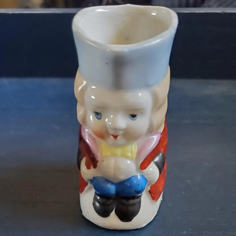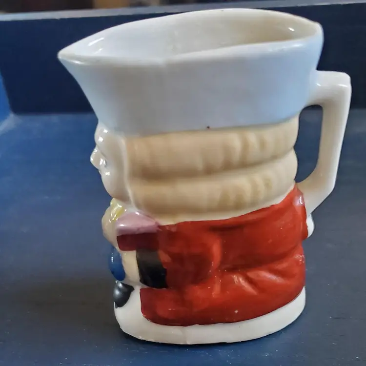 Cute little Toby jug standing 3" tall, 1 1/2" wide 2 1/2" front to back. Stamped Made in occupied japan on the bottom. In great condition. Has a little hard water deposit on the inside. Maybe had a little plant in it. No chips, cracks, or repairs
