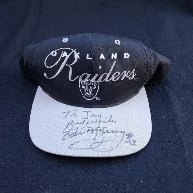 Player: ODIS McKENNEY #23 Modification Description: SIGNED by ODIS MCKENNEY League: National Football League (NFL) Size: One Size Color: Black/Silver Product: Cap, Hat Gender: Men Modified Item: Yes Brand: Drew Pearson Sport: Football-NFL Featured Refinements: Vintage Raiders Snapback Team: Oakland Raiders Country/Region of Manufacture: Bangladesh