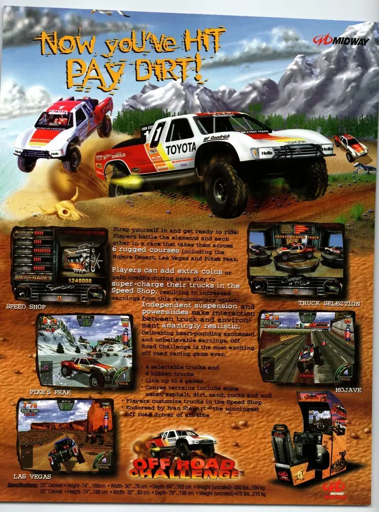 Brand: Midway Year: 1997 Game Title: Off Road Challenge Theme: Racing Original/Reproduction: Original Country/Region of Manufacture: United States Modified Item: No Arcade: Flyer