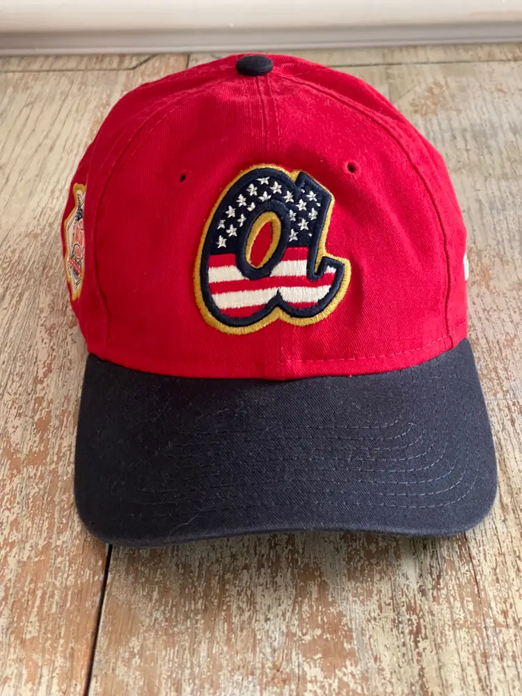 Hard to find Item! Official MLB Atlanta Braves Baseball throwback logo July 4th 2019 ball cap by NEW ERA 9Ninety Style YOUTH size 100% Cotton Adjustable Back National League Patch Officially Licensed Patriotic Theme Limited Edition No Stains