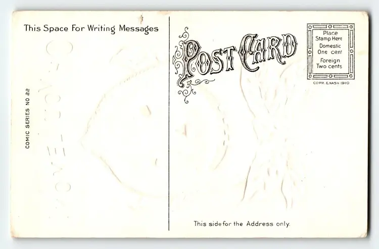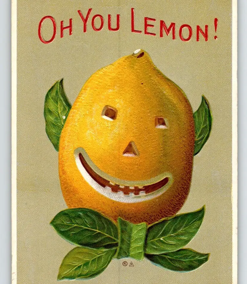 Number of Items in Set: 1 Unit of Sale: Single Unit Artist: Unknown Occasion: Halloween Size: Standard (5.5 x 3.5 in) Signed: No Custom Bundle: No Year Manufactured: 1910 Material: Paper Original/Licensed Reprint: Original Franchise: E. Nash Brand/Publisher: Nash Subject: Anthropomorphic Vintage: Halloween Postcard Type: Printed (Lithograph) Era: Pre-War (Pre-1914) Theme: Anthropomorphic, Fantasy, JOL, Lemon, Lemon Head Features: Divided Back, Embossed Time Period Manufactured: 1900-1919 Country/Region of Manufacture: Unknown Postage Condition: Unposted Original: Postcard