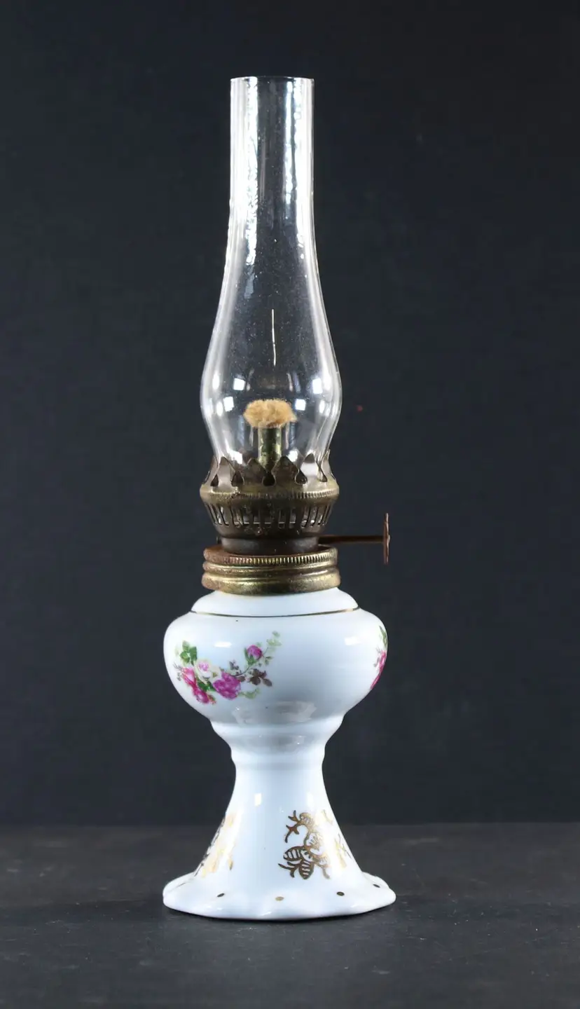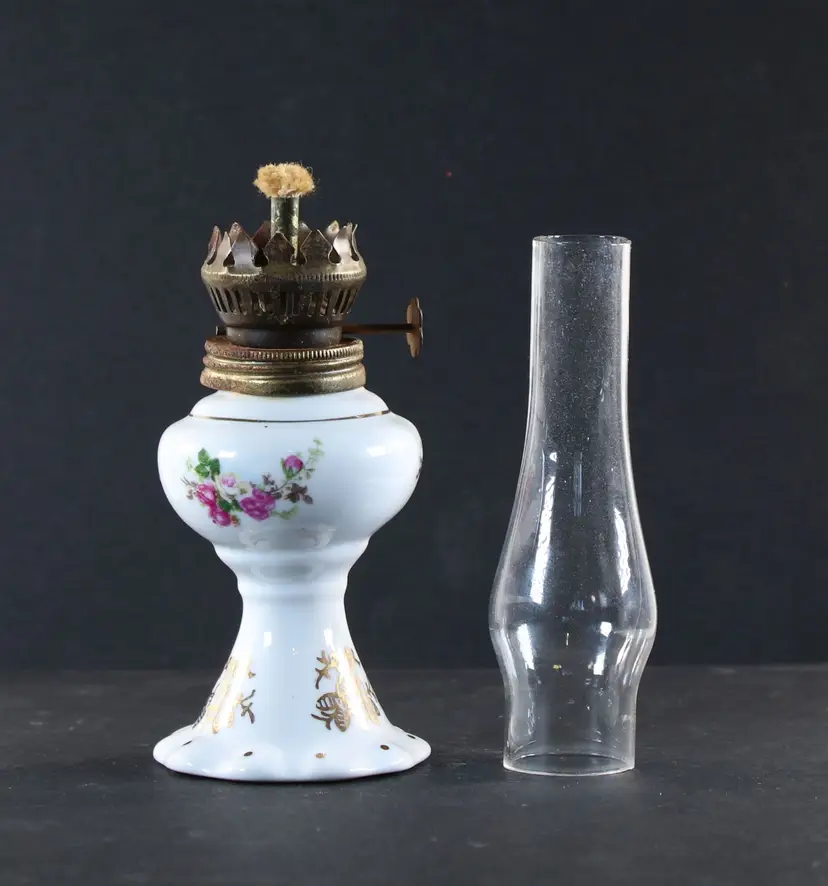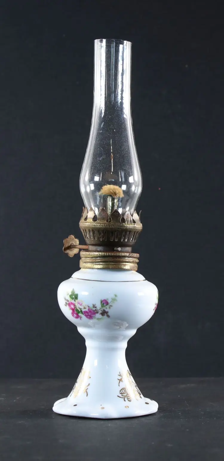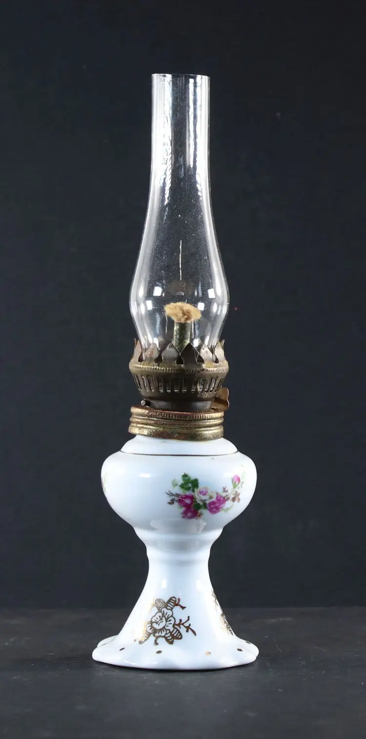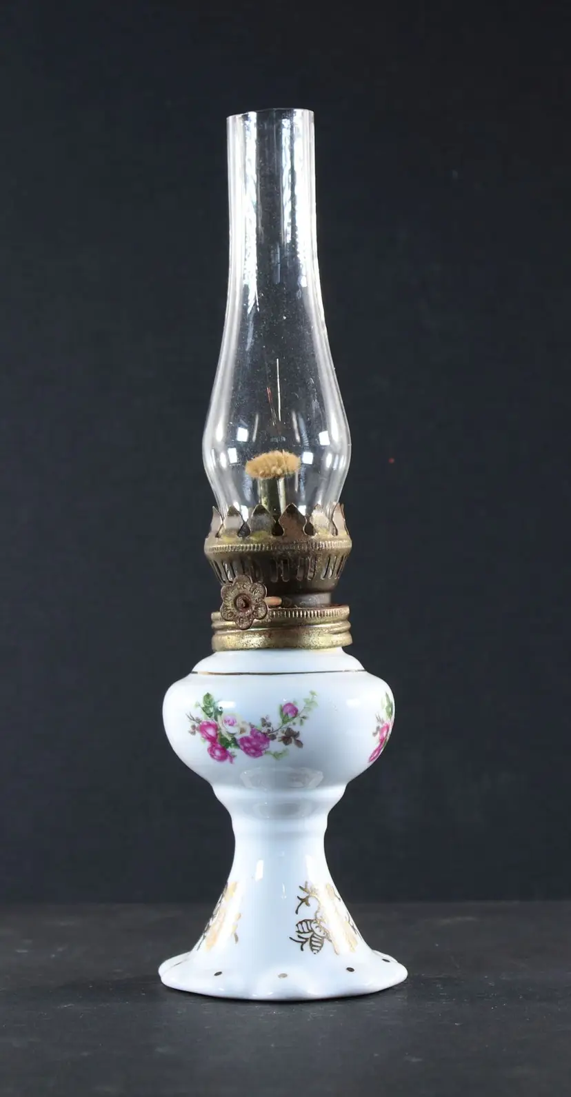Oil Lamp Decorative White Miniature Vintage Porcelain Kerosene Lamp With Wick Roses