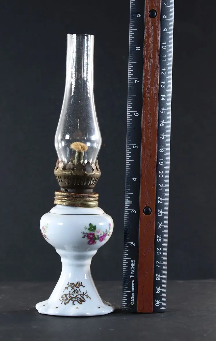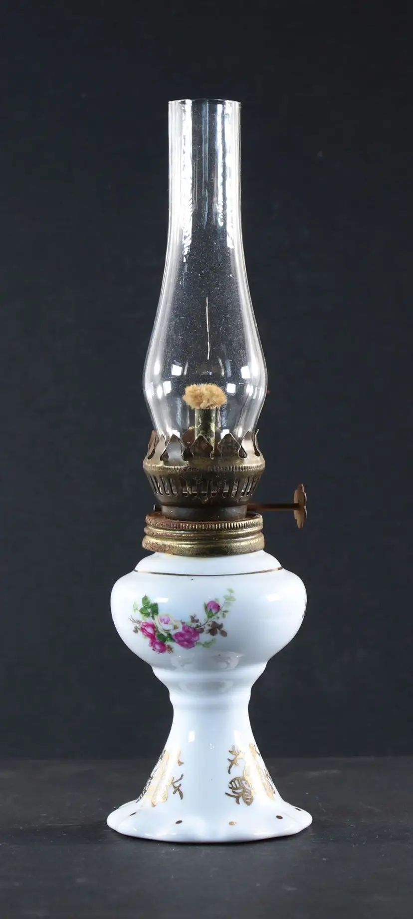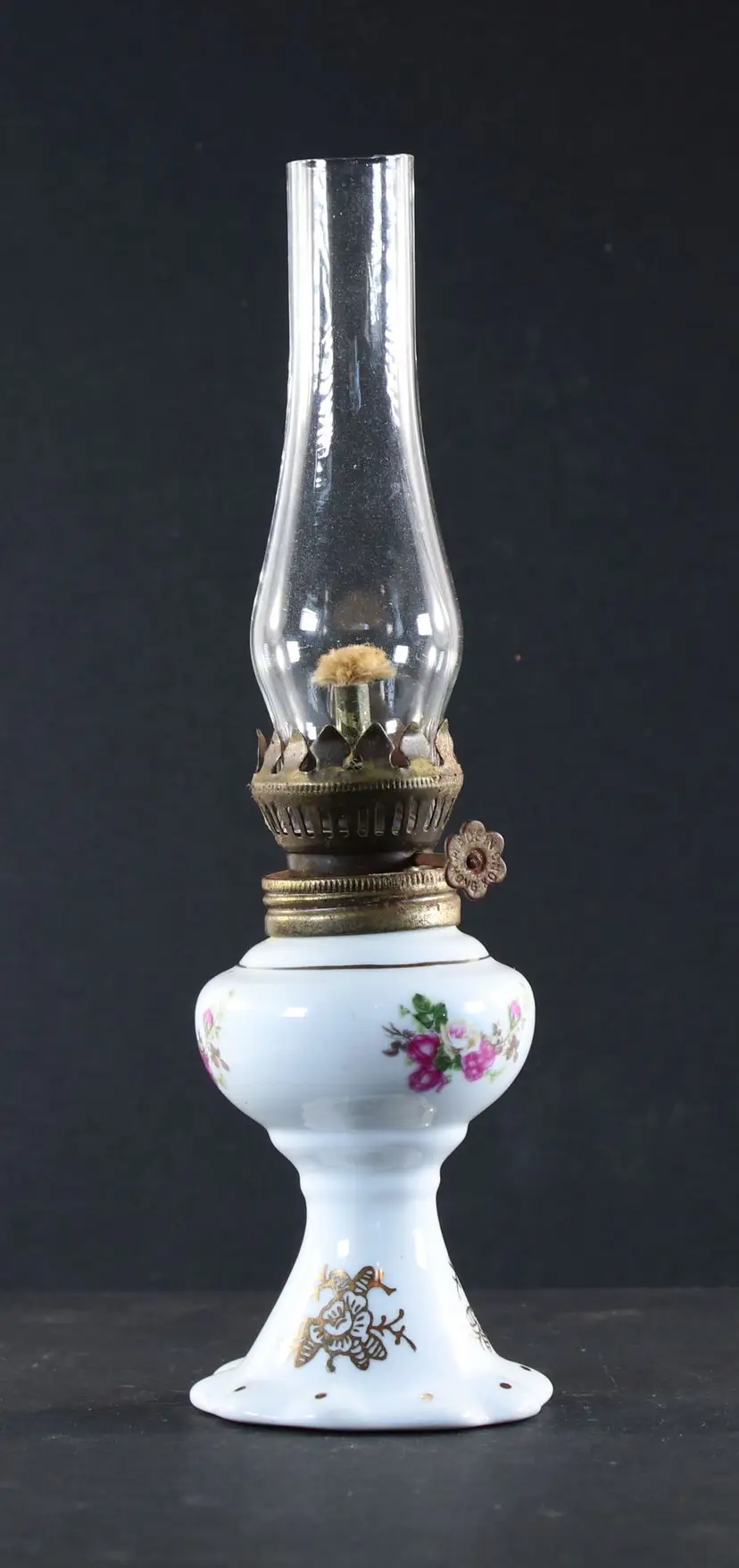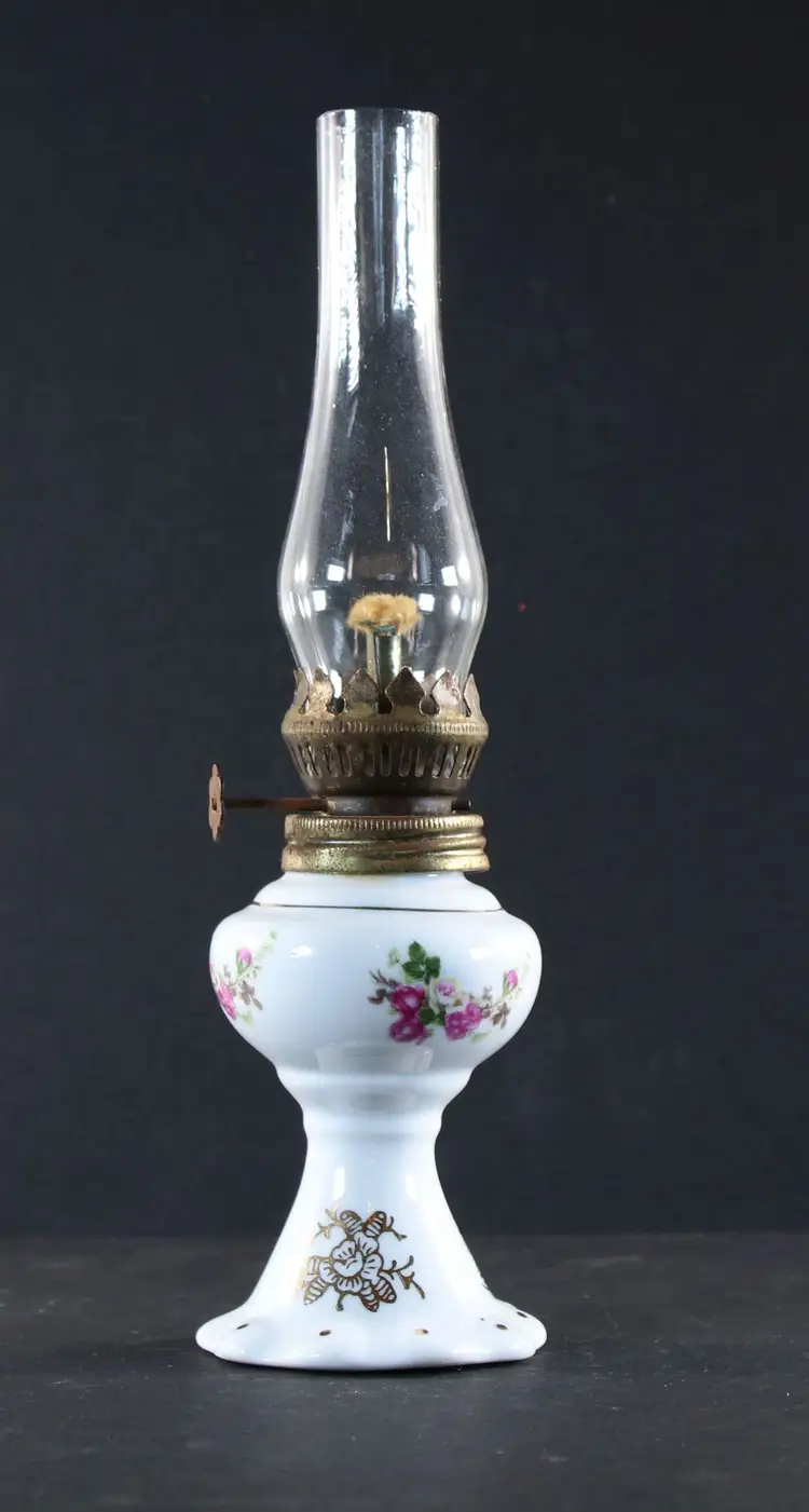 Oil Lamp Decorative White Miniature Vintage Porcelain Kerosene Lamp With Wick Roses