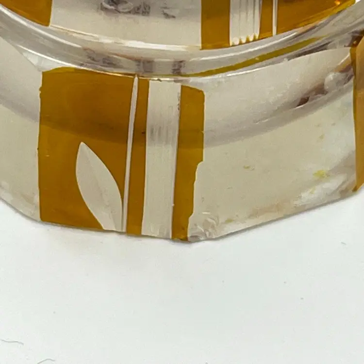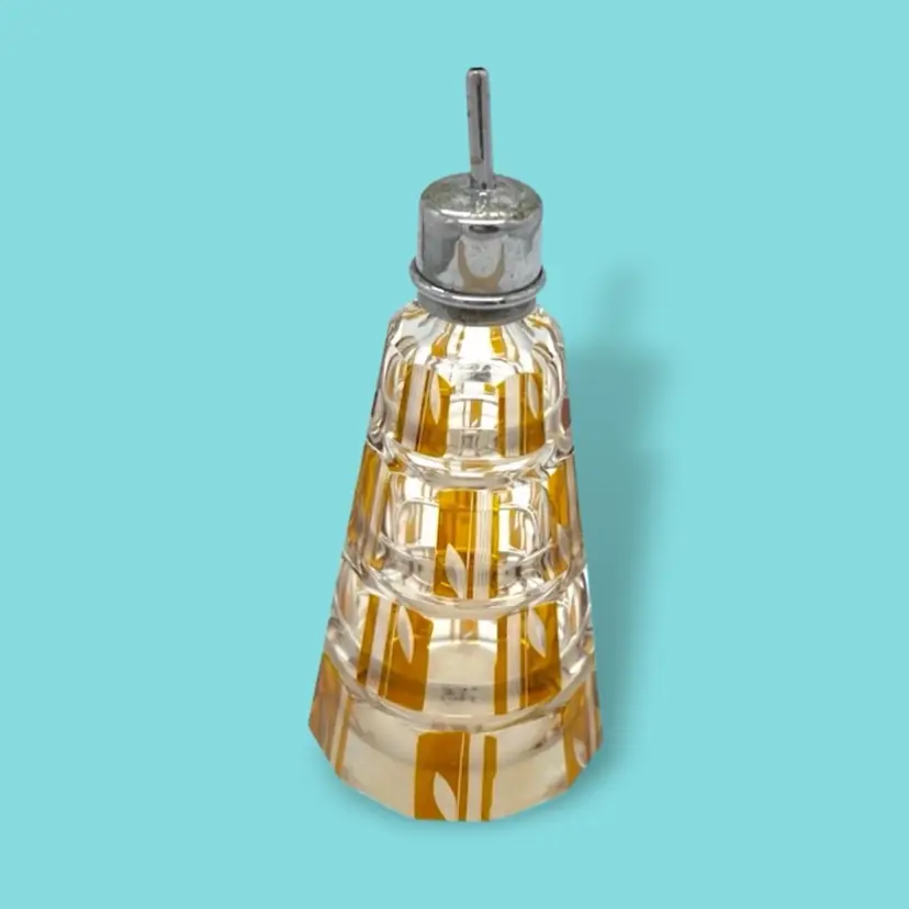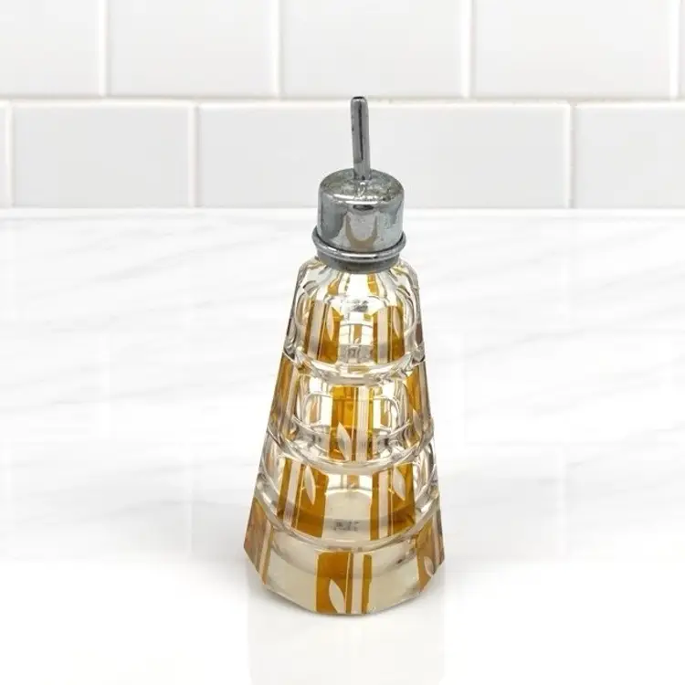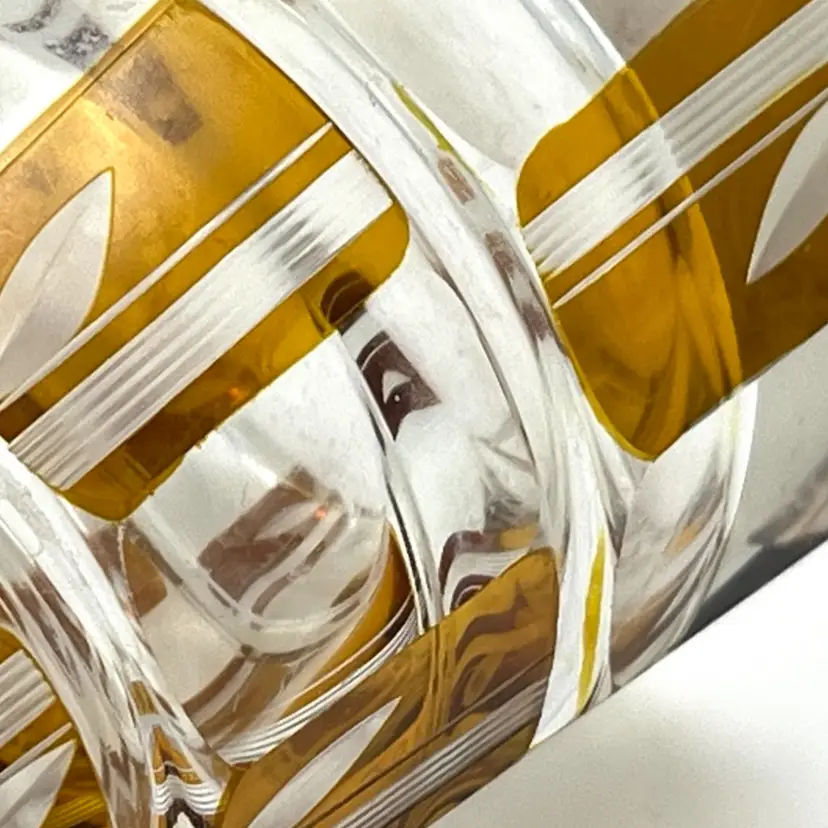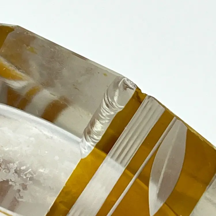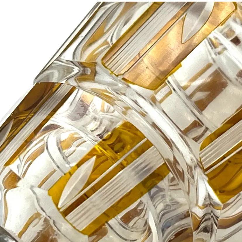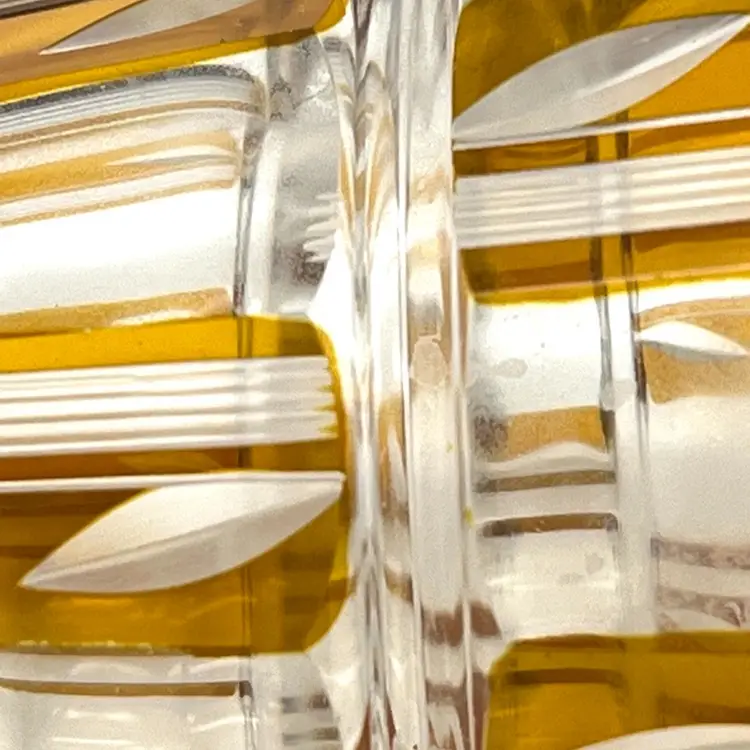 Beautiful old heavy cut-to-clear cut glass perfume bottle with amber yellow. I believe this was originally an atomizer but it's missing the atomizer part of the cap. Probably dates to the 1930s-40s. This would be beautiful in a window sill with the sunlight shining through!
