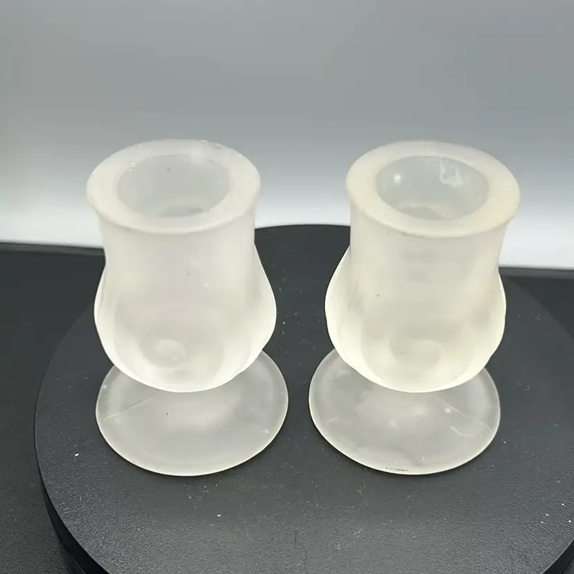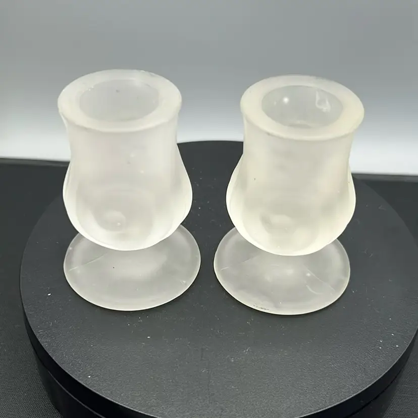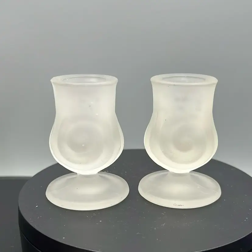 These are a pair of vintage Old Harbor Candles clear frosted satin glass candle holders.
