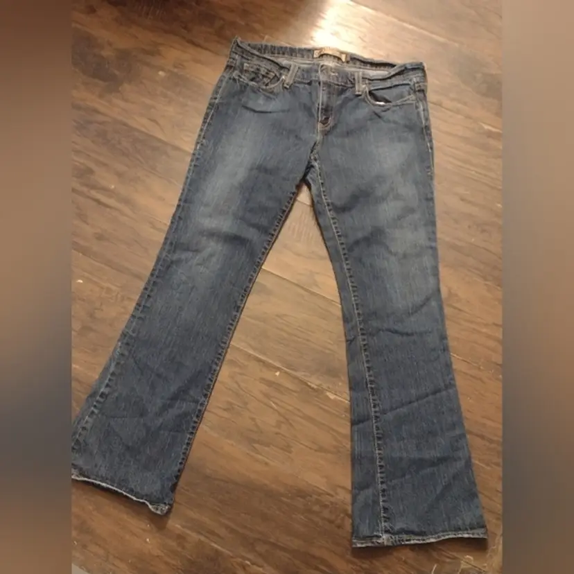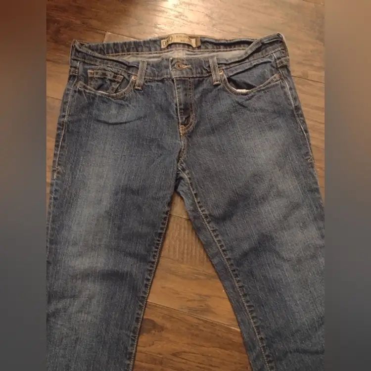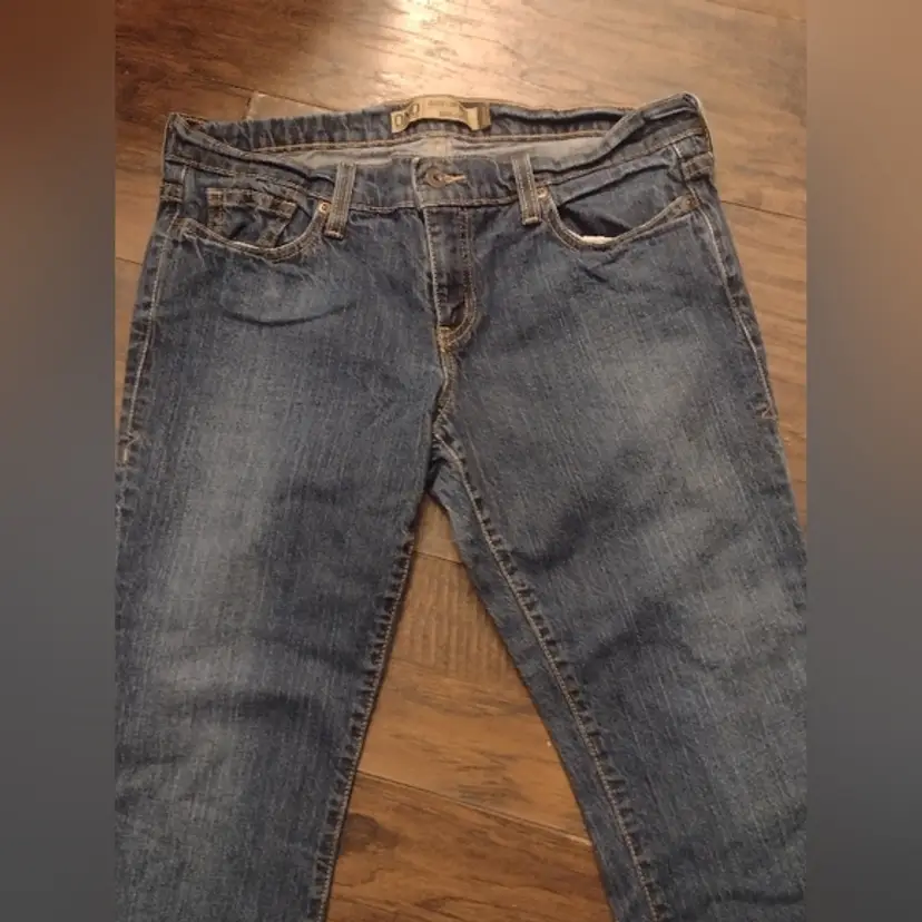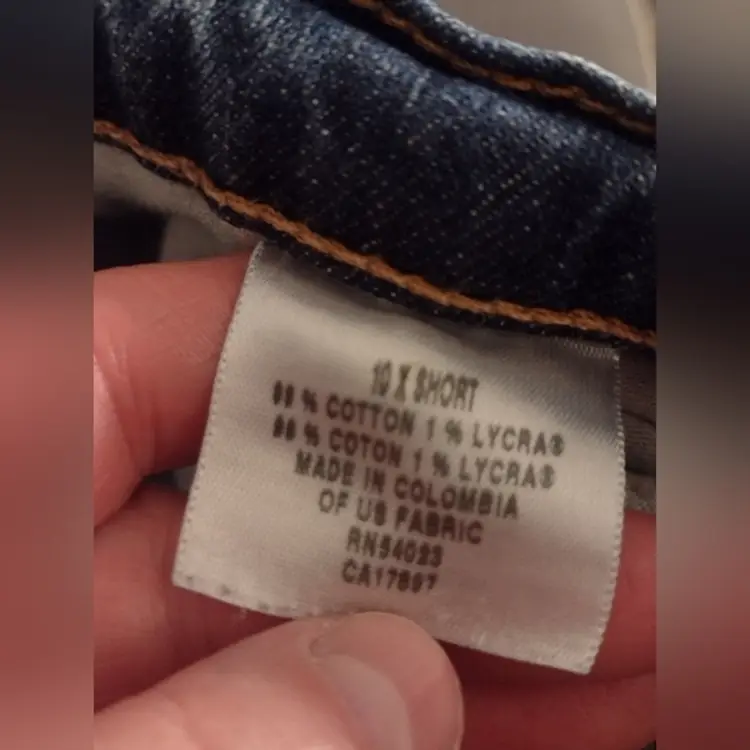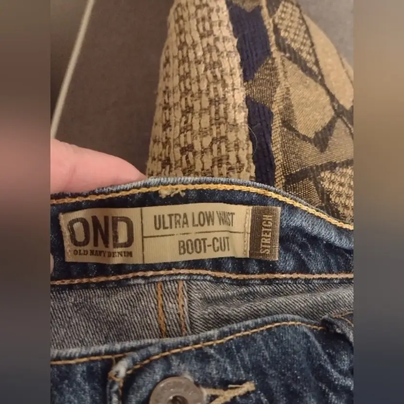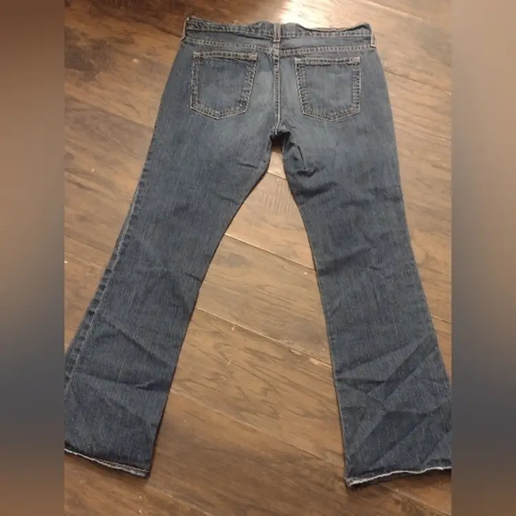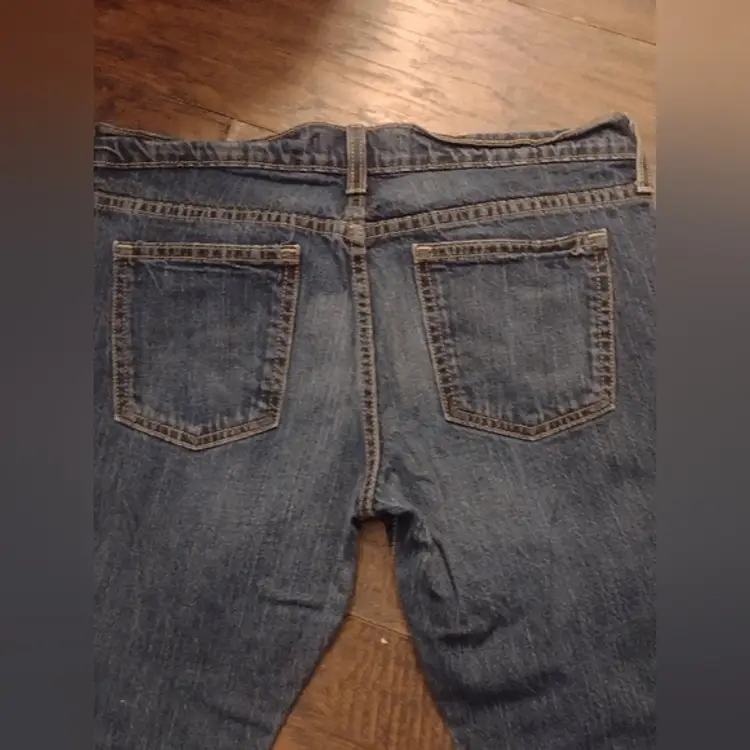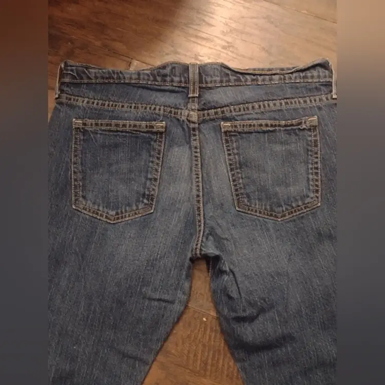 These Old Navy jeans feature a timeless boot cut design in a rich blue hue, perfect for everyday wear. Crafted from durable denim, they offer a comfortable fit with a classic silhouette. The subtle fading adds a touch of character, making them a versatile addition to any wardrobe. Made in Columbia. 99%Cotton. 1%Lycras RN#54023