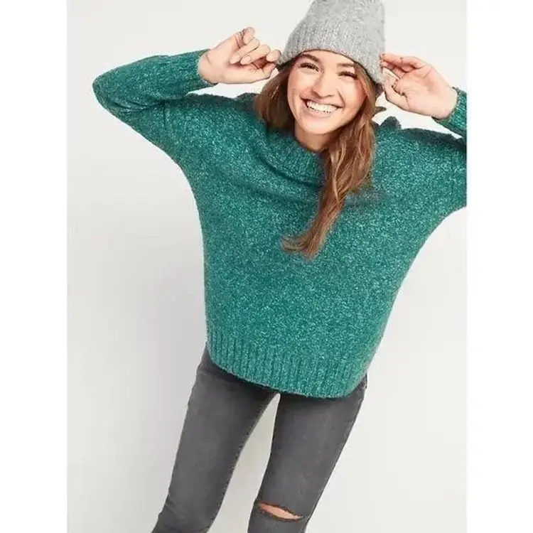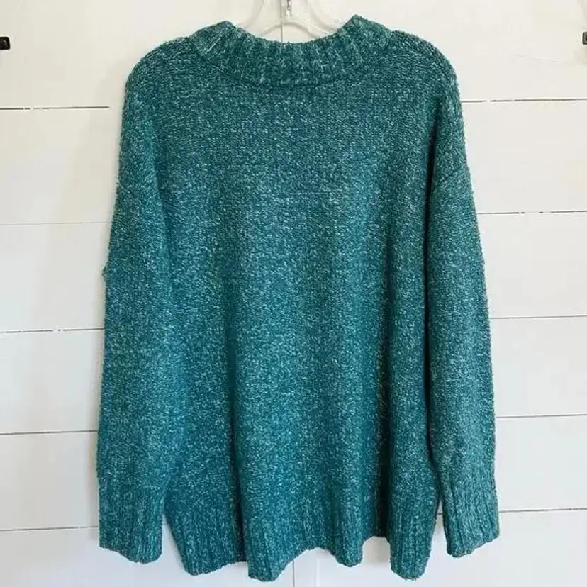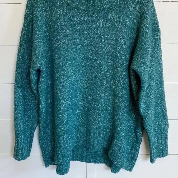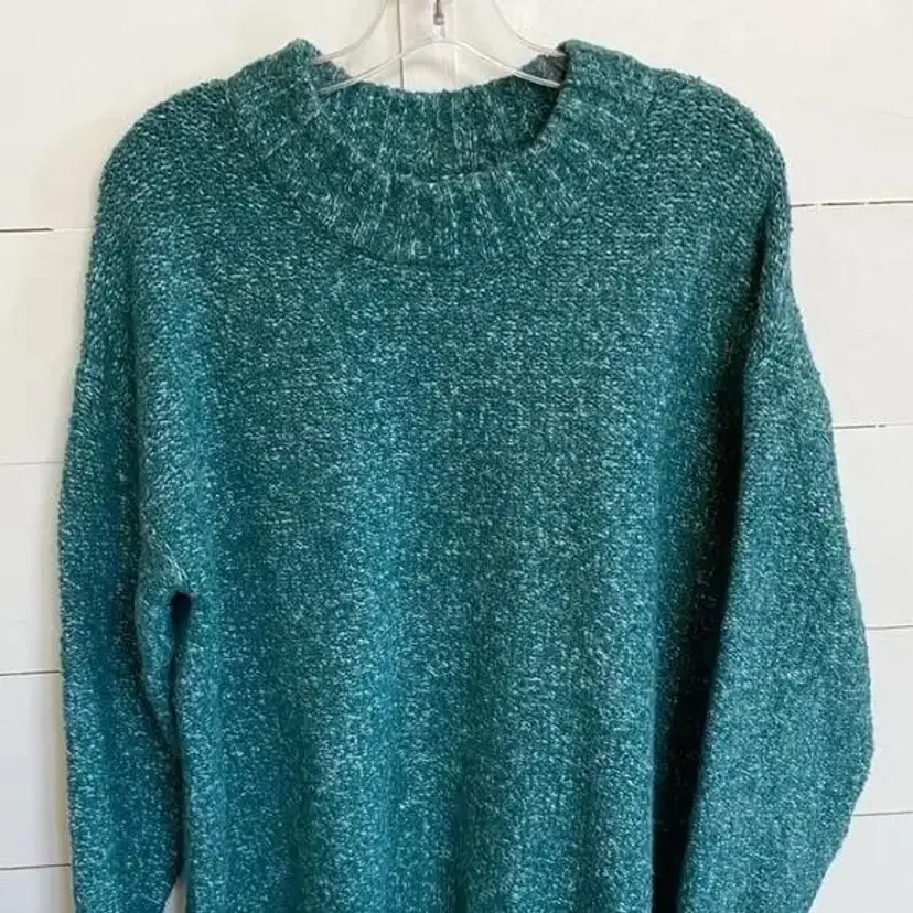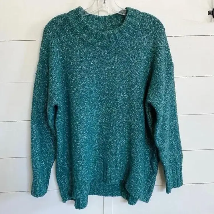 Teal blue/green marled heather cozy oversized crewneck sweater Boxy fit, slightly longer in back Excellent condition - no flaws