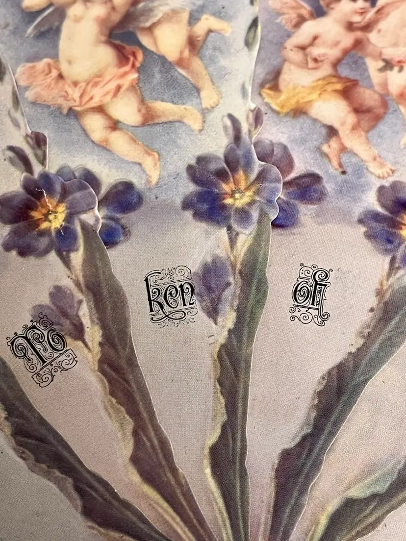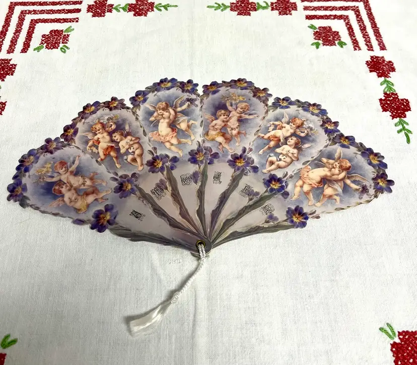 Old Print Factory Reproduction Victorian Valentines With Cherubs Angels Floral . One large easel style and one folding fan. Neither have been used or written on. May have slight bends or creases and no envelopes included.