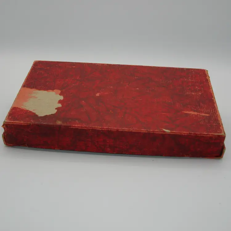 Each knife measures 9.25" from tip of blade to end of handle. Knives have been stored in the original, red-colored faux lizard paperboard box that measures 9.75" x 6" x 1.25". Weight of knives and box is 14.8 ounces.