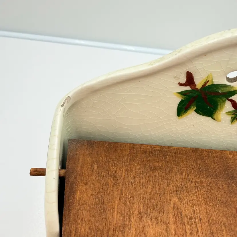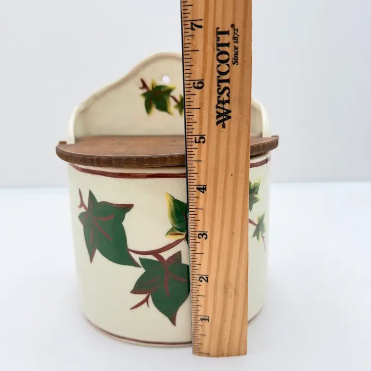 As shown 6.5 inches tall by 5 inches long Small chip on top edge no cracks