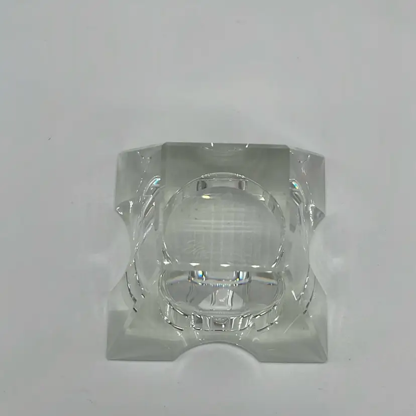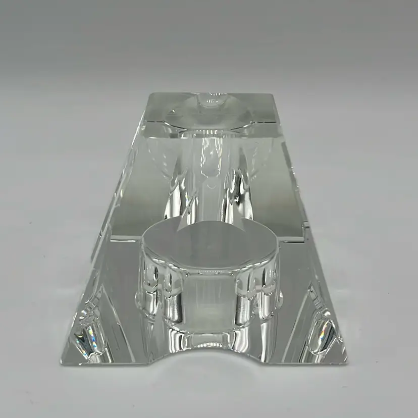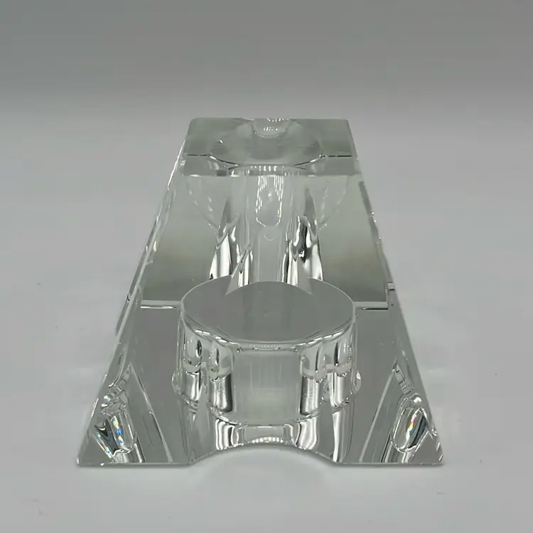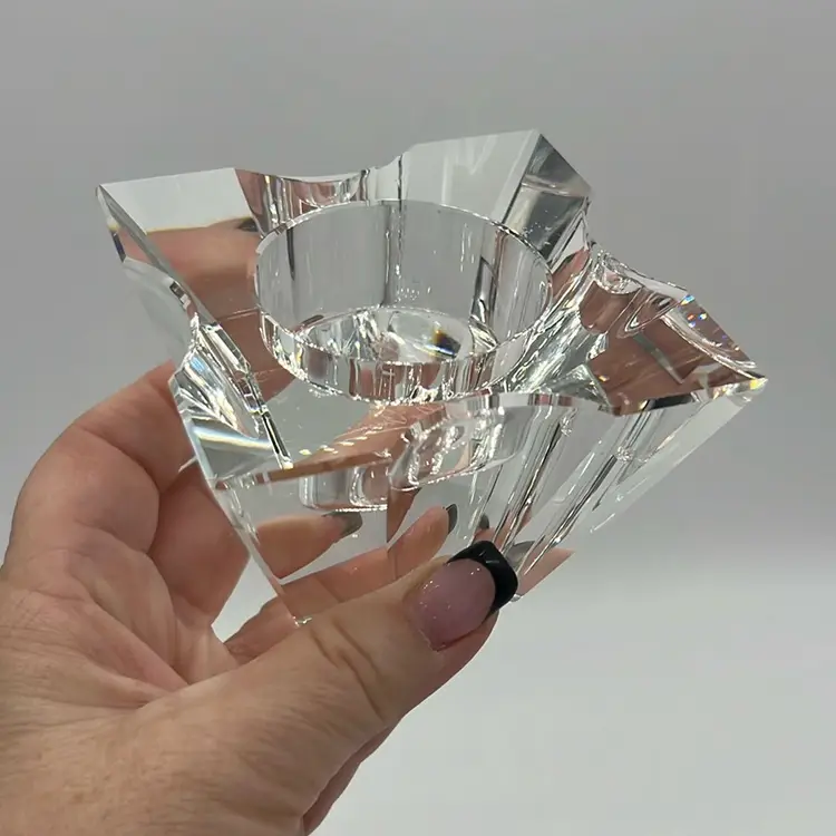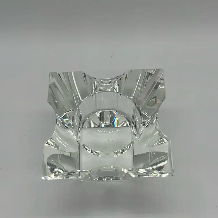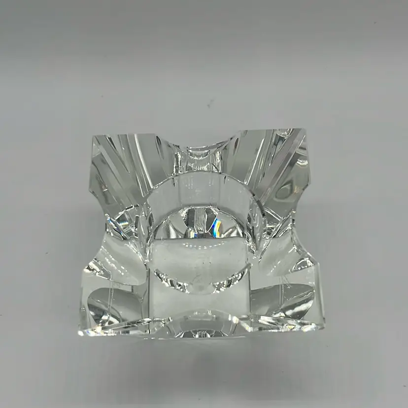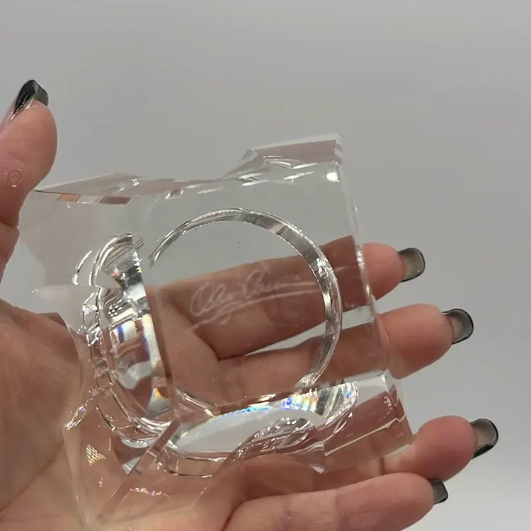 Beautiful crystal signed Oleg Cassini Candle Holder. Some minor surface scratching on bottom. No chips or cracks. Good condition! Could be used to display a paperweight!