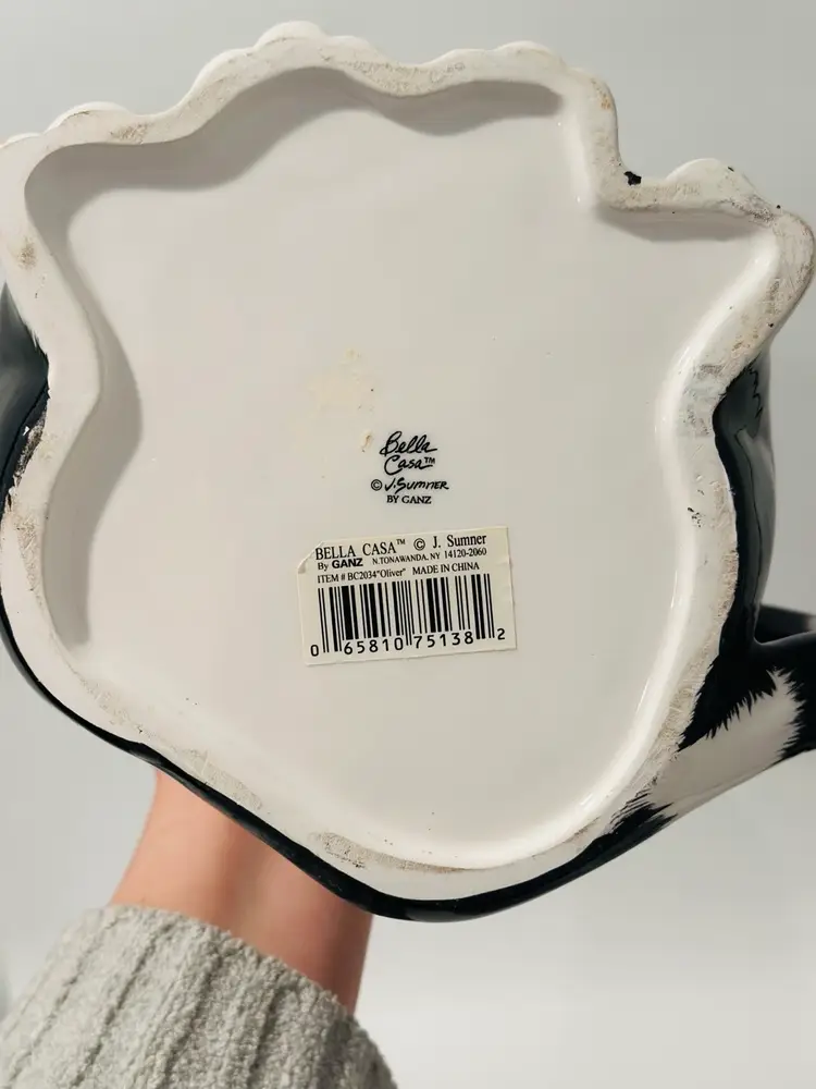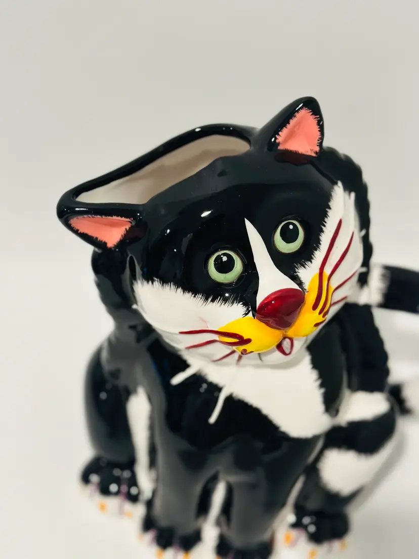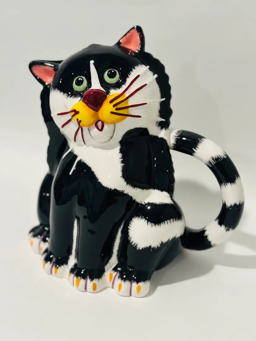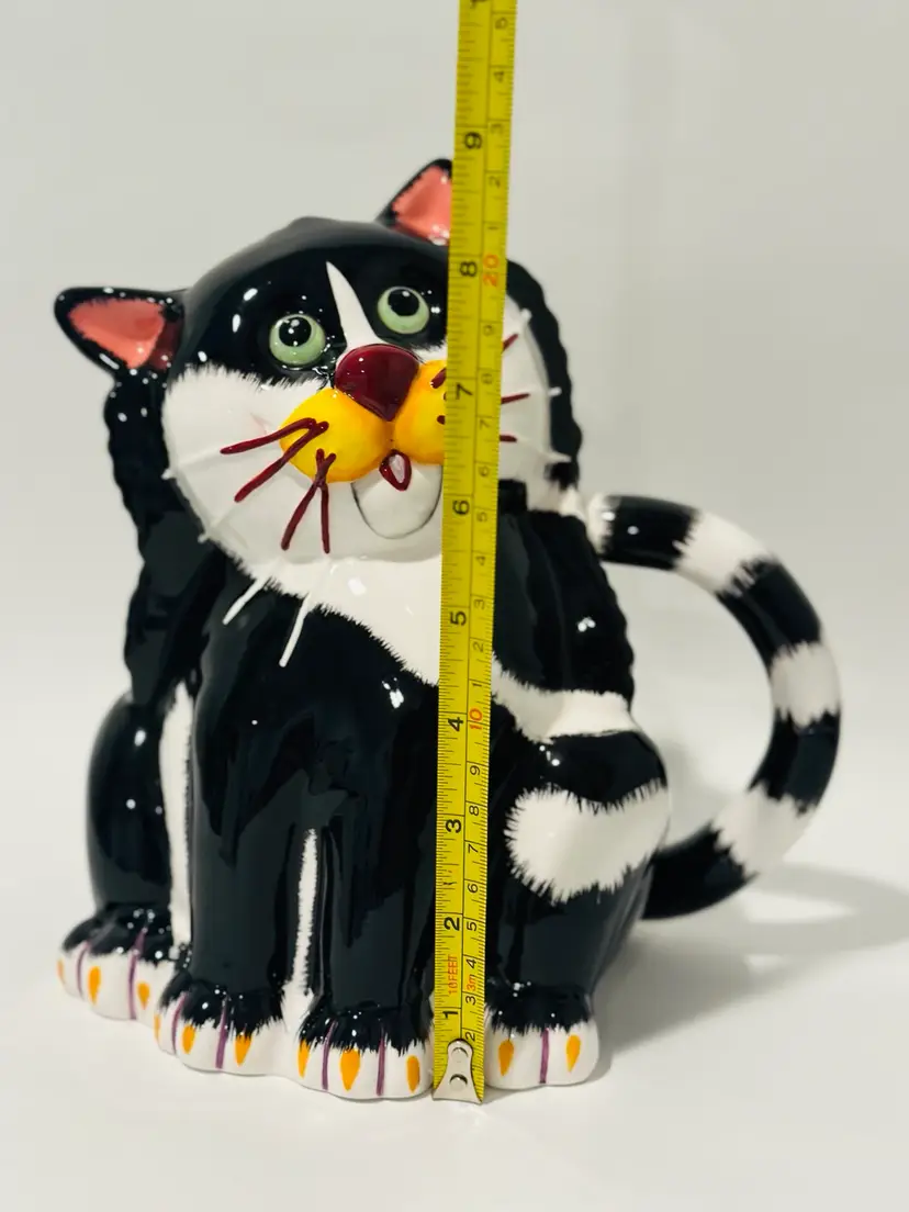 This charming and unique ceramic pitcher features an adorable black and white cat design, adding a touch of whimsy to any collection. With one spacious compartment, it's perfect for serving your favorite beverages. The glossy finish gives it a modern appeal, and its large size (8.75 inches) makes it a standout piece.
