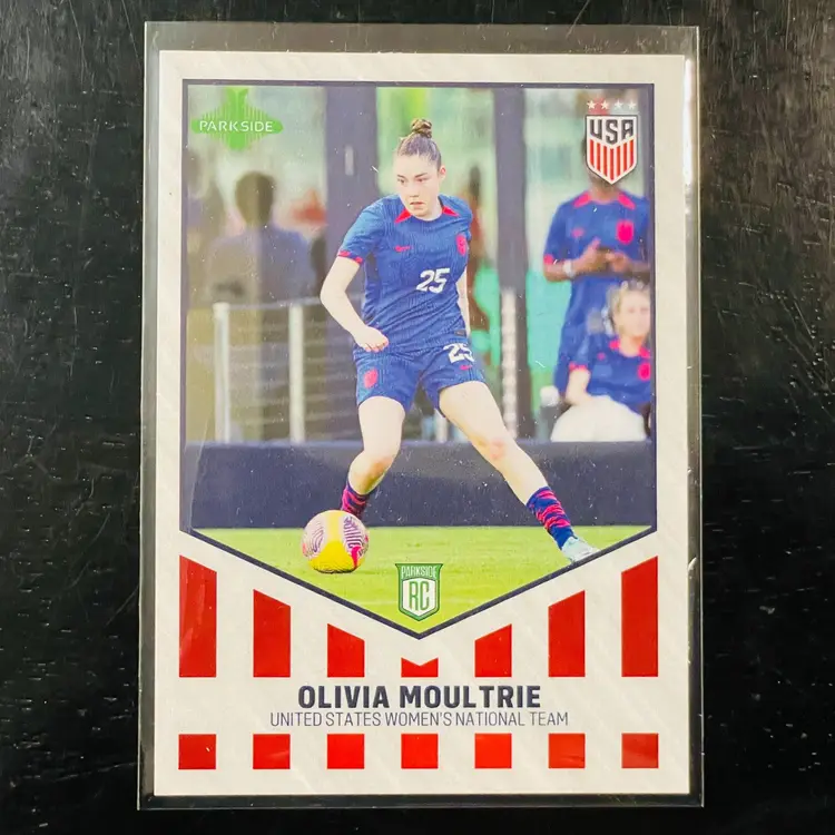 You are bidding on an Olivia Moultrie rookie card from the 2023 Parkside USWNT Recap Set. This card features Olivia in her United States Women's National Team kit. A must-have for any collector or fan of women's soccer!