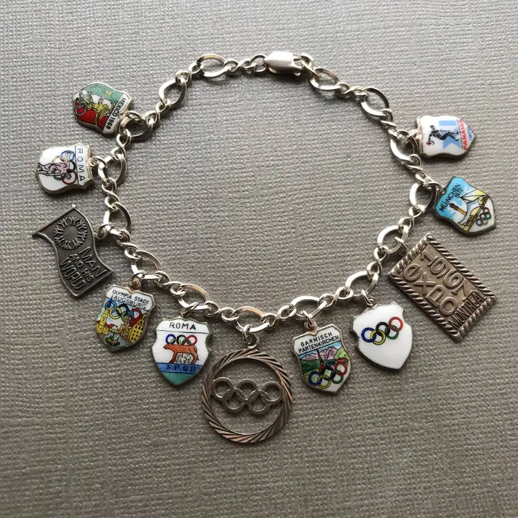 Olympics - 60's-70's Vintage Silver Enamel Travel Shield Charm Bracelet - 11 Charms Mexico 1968, Roma, Garmisch, Augsburg, Munich 1972, Panama 1970 Favorite my eCharmony Etsy store to see new charms: Follow Us: Website: http://www.echarmony.com/ Facebook: https://www.facebook.com/eCharmonyCharms/ Instagram: https://www.instagram.com/echarmony/ Twitter: https://twitter.com/eCharmonyCharms Pinterest: https://www.pinterest.com/echarmony/ Store: http://www.echarmony.com/shieldcharms/