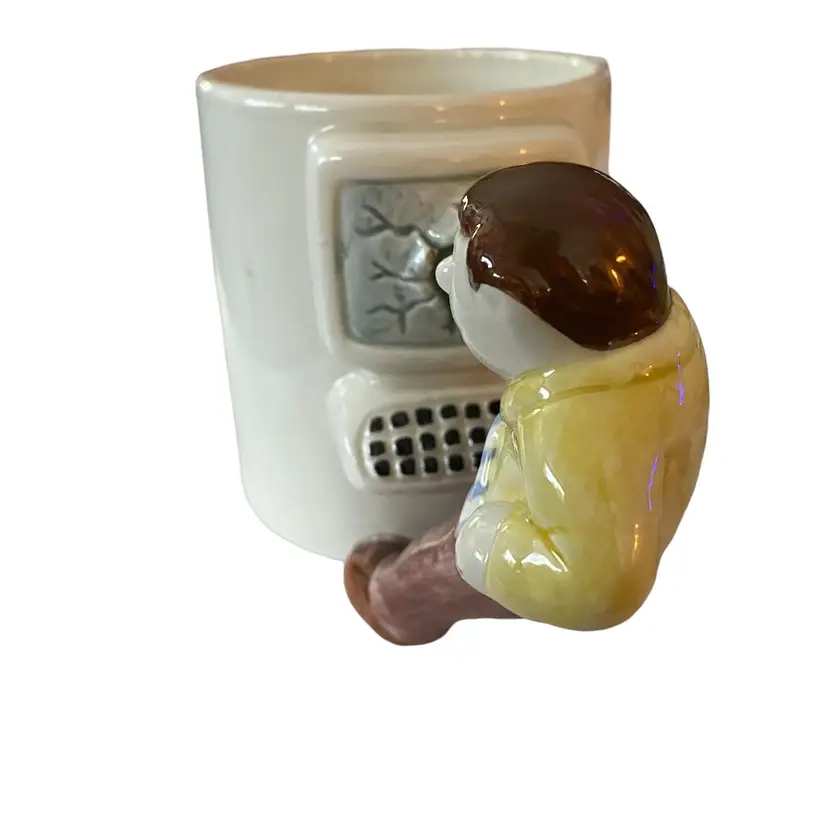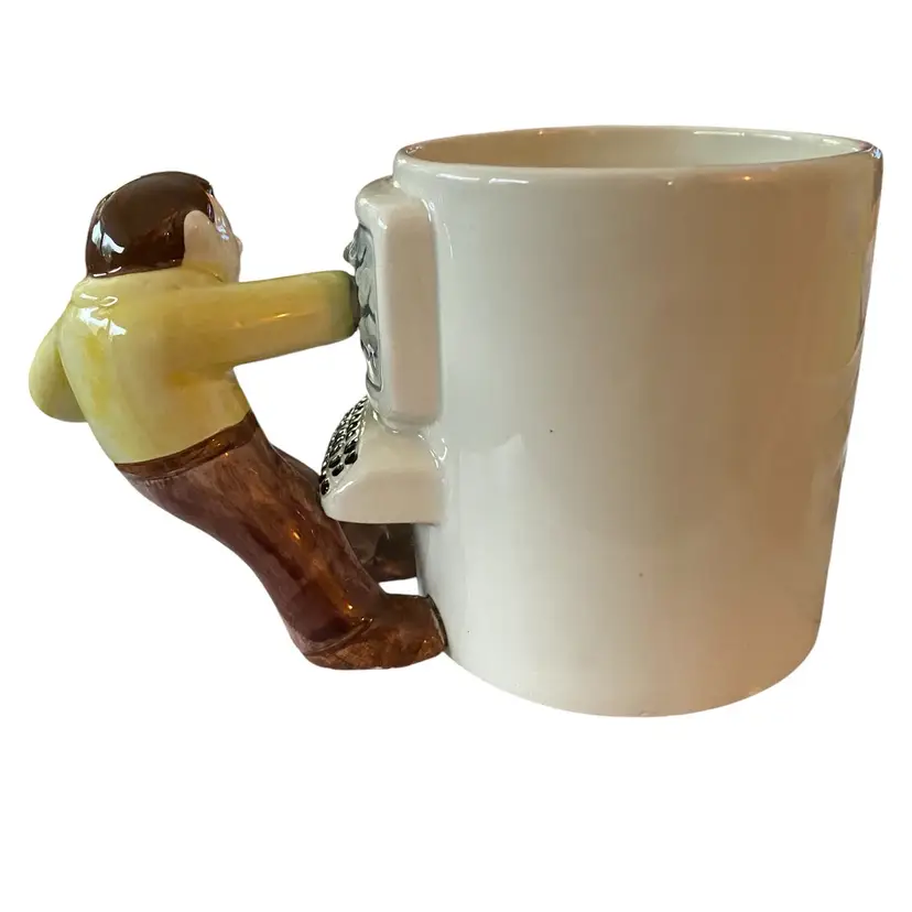 OMNIBUS Vintage Coffee Cup Mug Business Man Smashing Hand in to Computer Screen Vintage 6in wide 2.75in